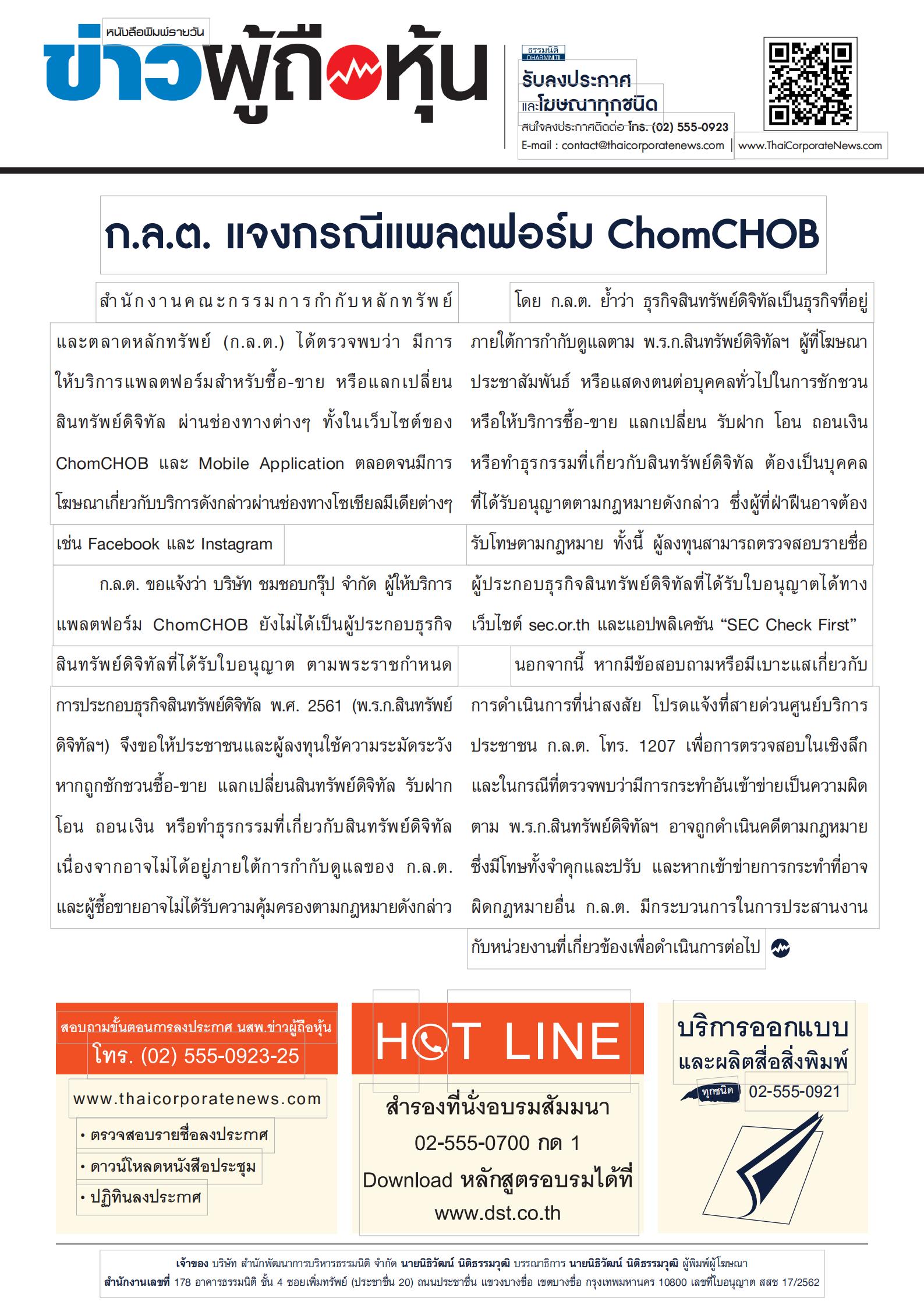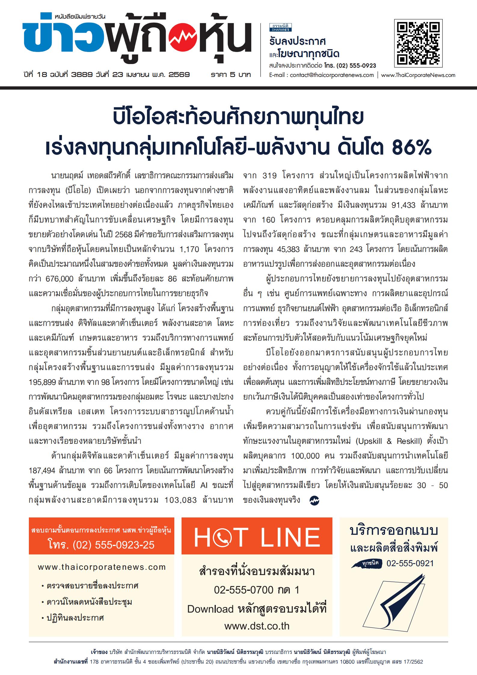 หนังสือพิมพ์ ข่าวผู้ถือหุ้น ฉบับล่าสุด