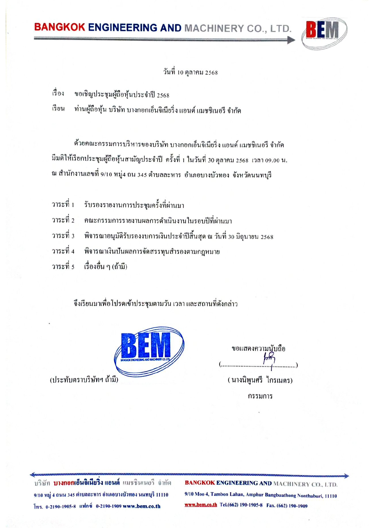 ประกาศ เรื่อง ประชุมรับรองงบการเงิน