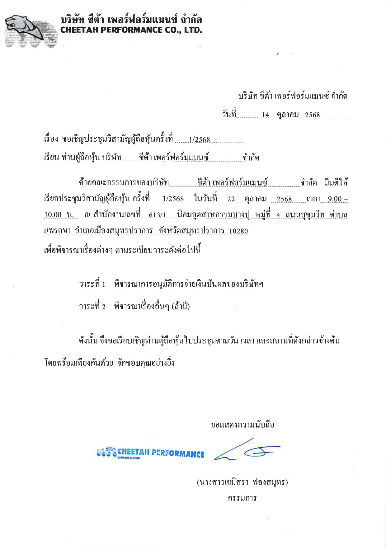 ประกาศ เรื่อง ประชุมวิสามัญ จ่ายเงินปันผล
