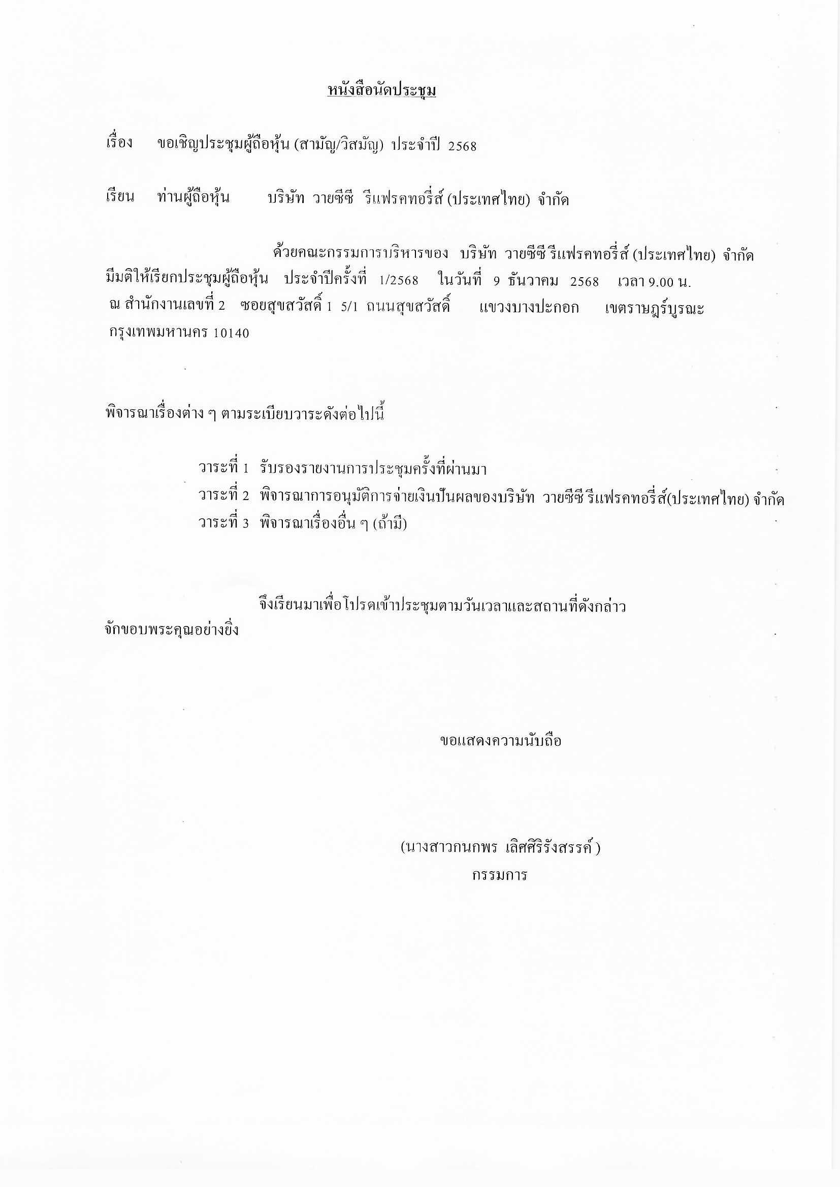 ประกาศ เรื่อง ประชุมวิสามัญ จ่ายเงินปันผล