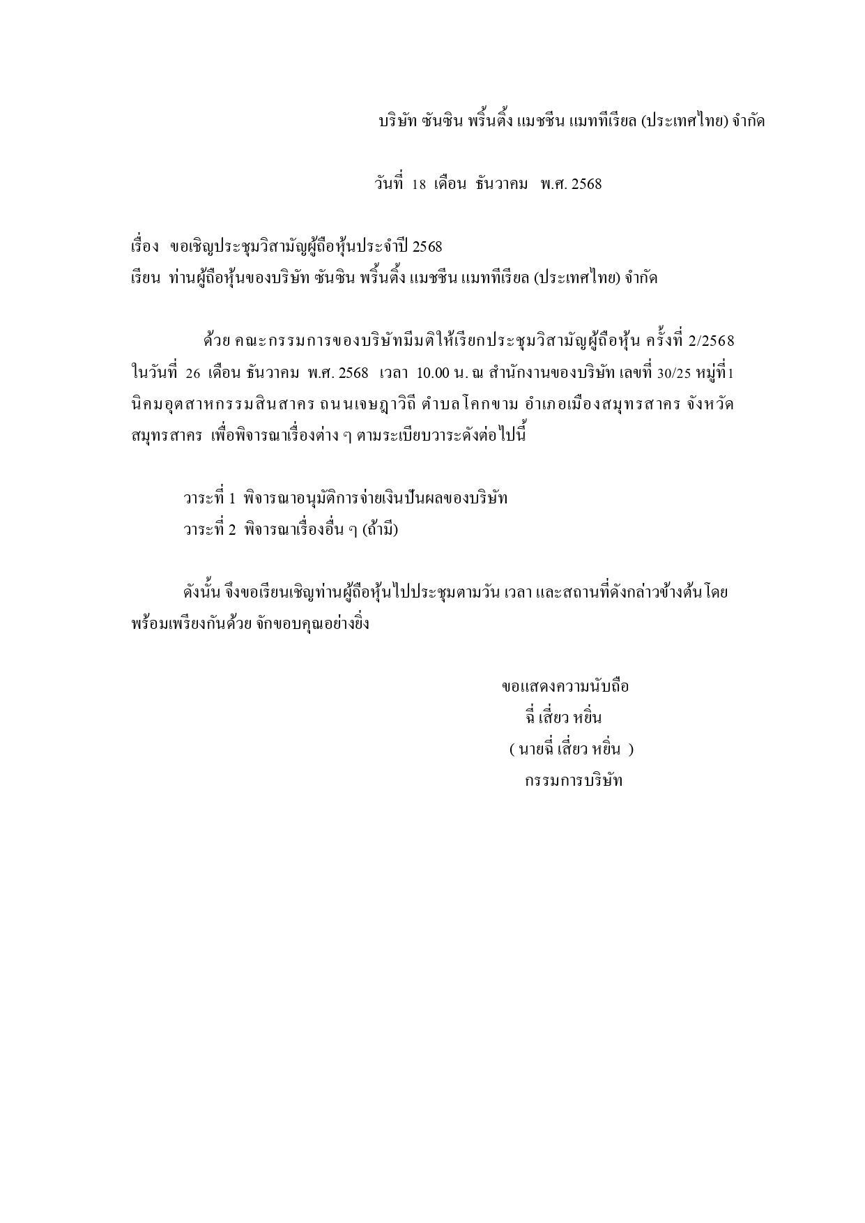ประกาศ เรื่อง ประชุมวิสามัญ จ่ายเงินปันผล