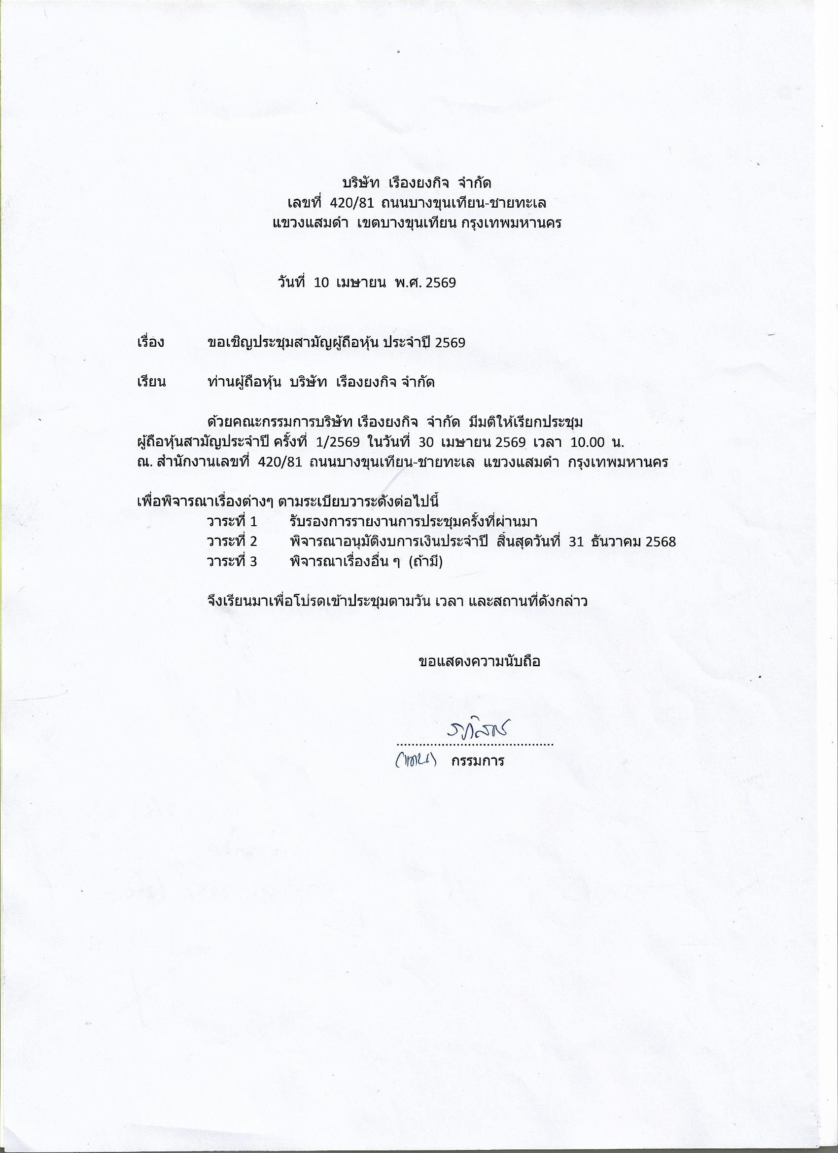 ประกาศ เรื่อง ประชุมรับรองงบการเงิน