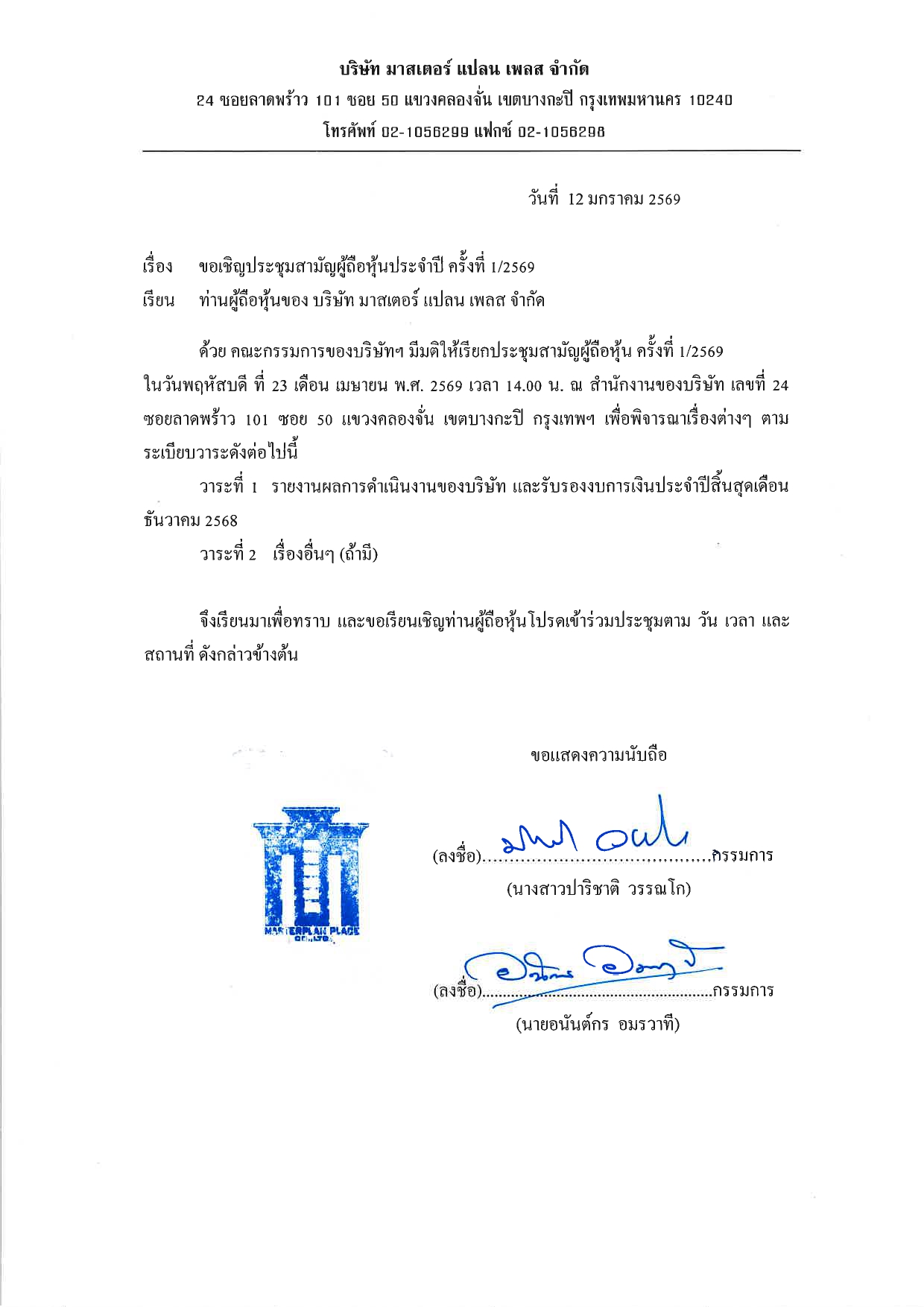 ประกาศ เรื่อง ประชุมรับรองงบการเงิน