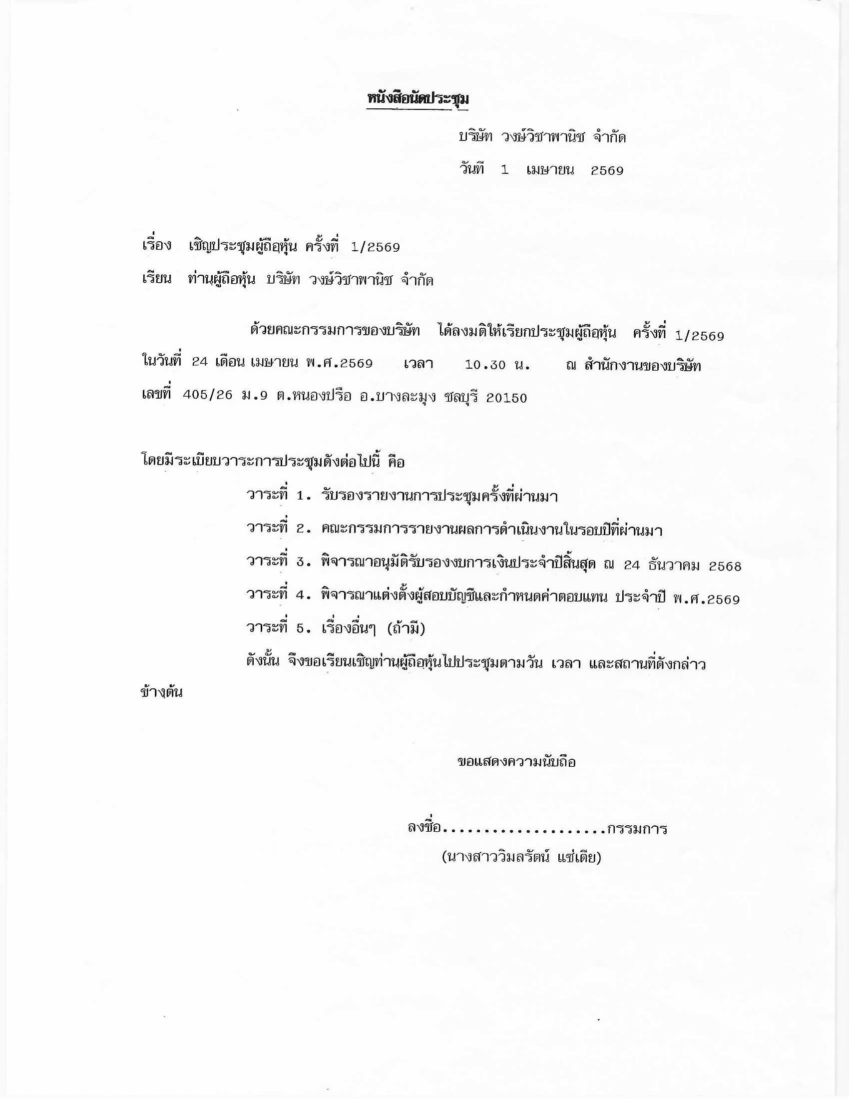 ประกาศ เรื่อง ประชุมรับรองงบการเงิน