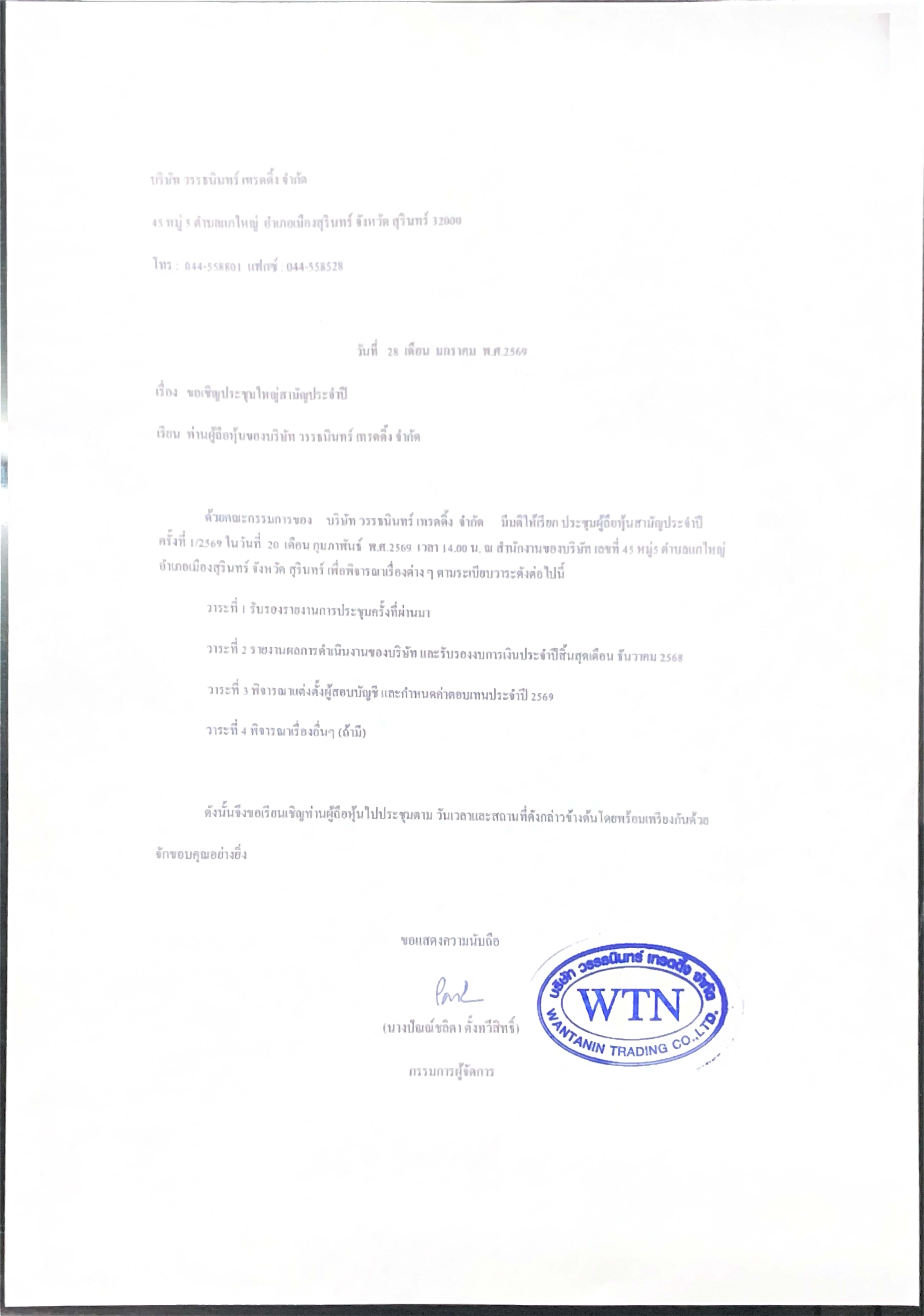 ประกาศ เรื่อง ประชุมรับรองงบการเงิน