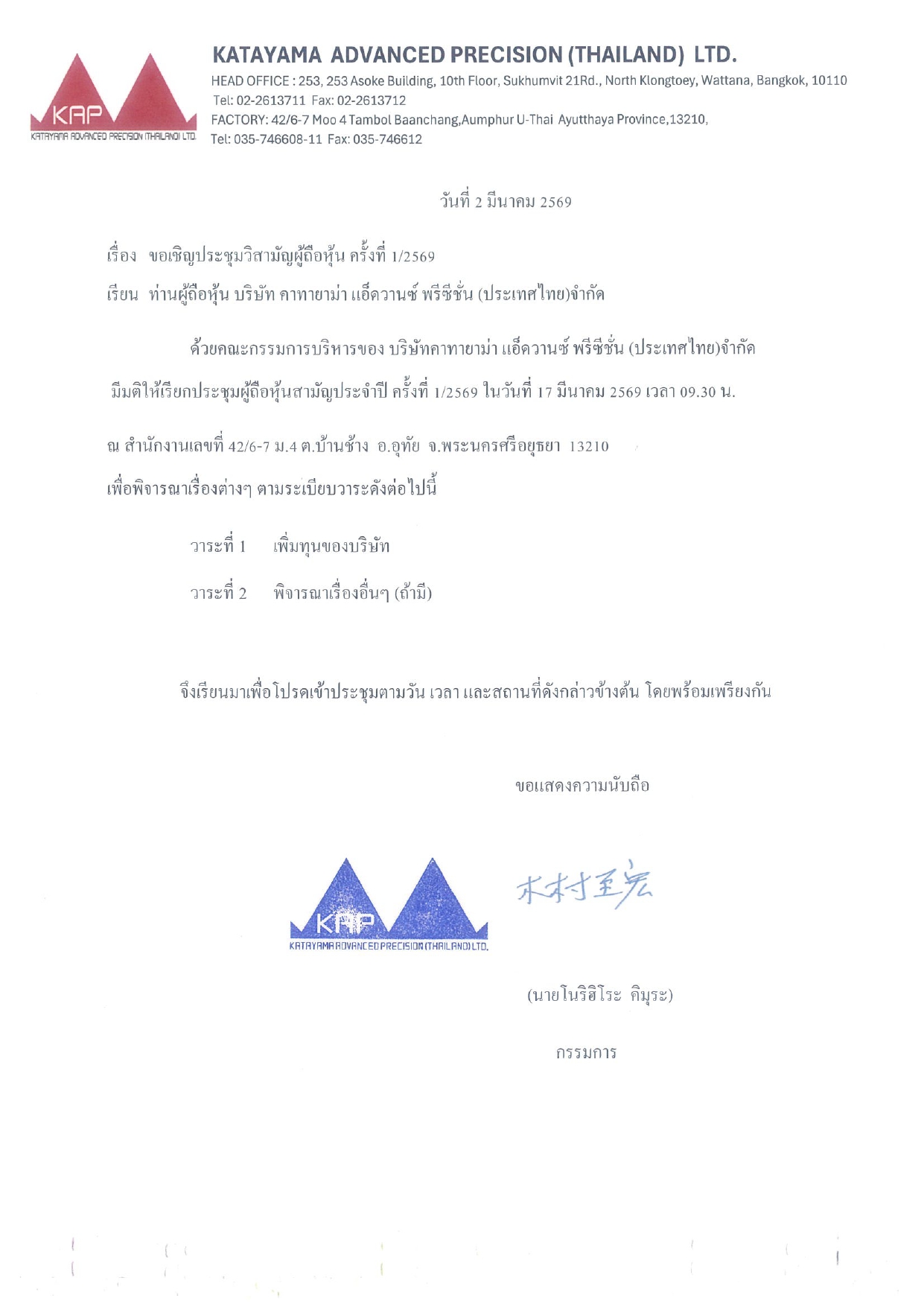 ประกาศ เรื่อง เพิ่มทุน
