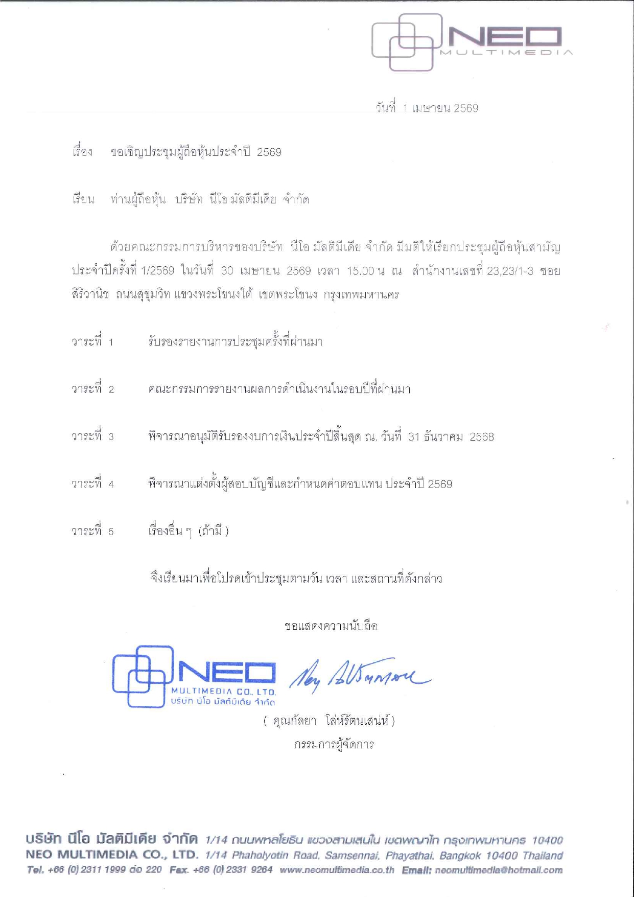 ประกาศ เรื่อง ประชุมรับรองงบการเงิน