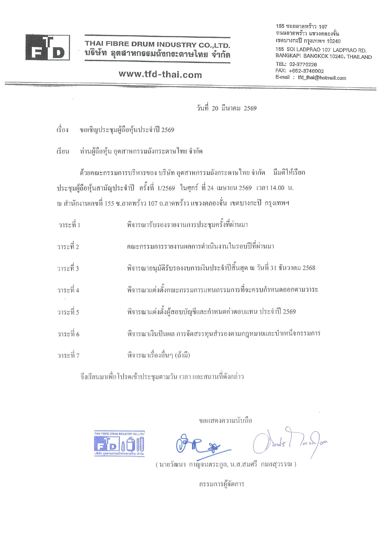 ประกาศ เรื่อง ประชุมรับรองงบการเงิน
