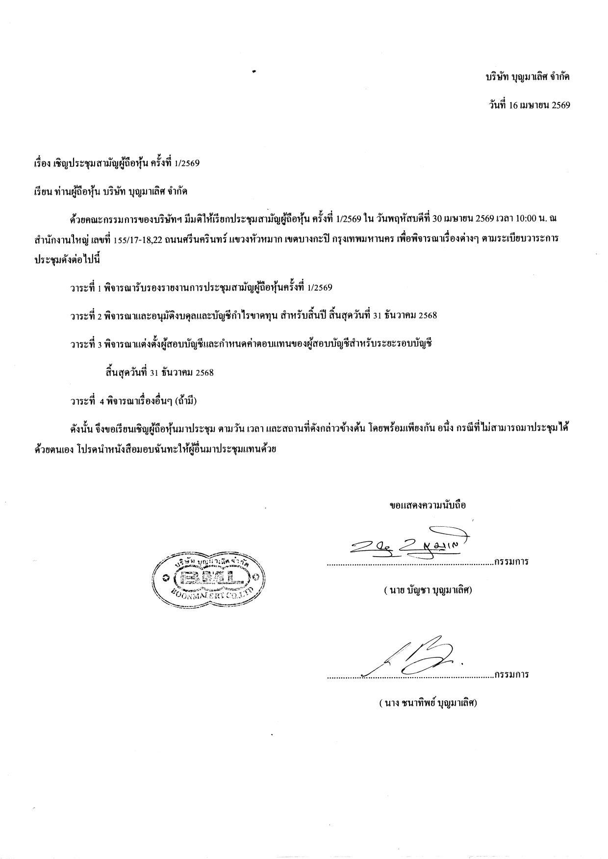ประกาศ เรื่อง ประชุมรับรองงบการเงิน