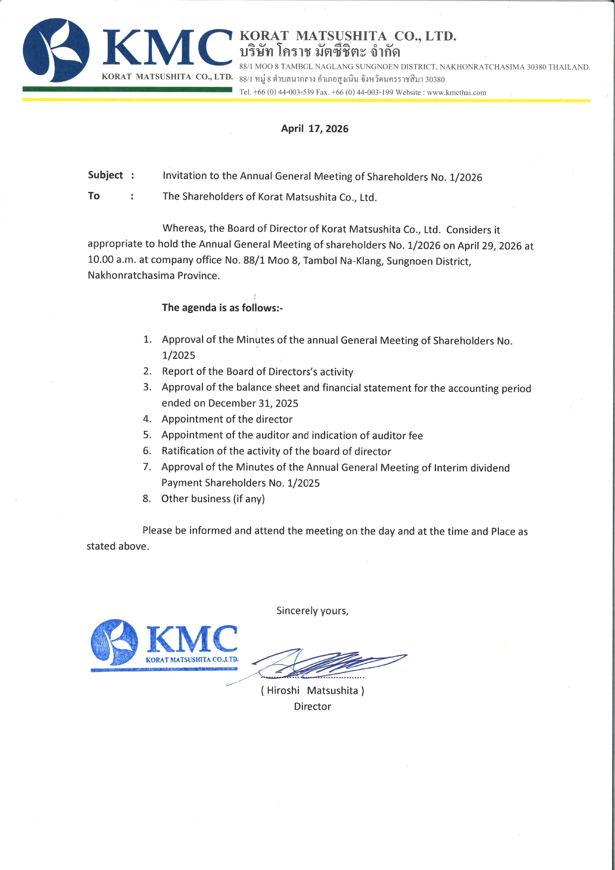 ประกาศ เรื่อง ประชุมรับรองงบการเงิน