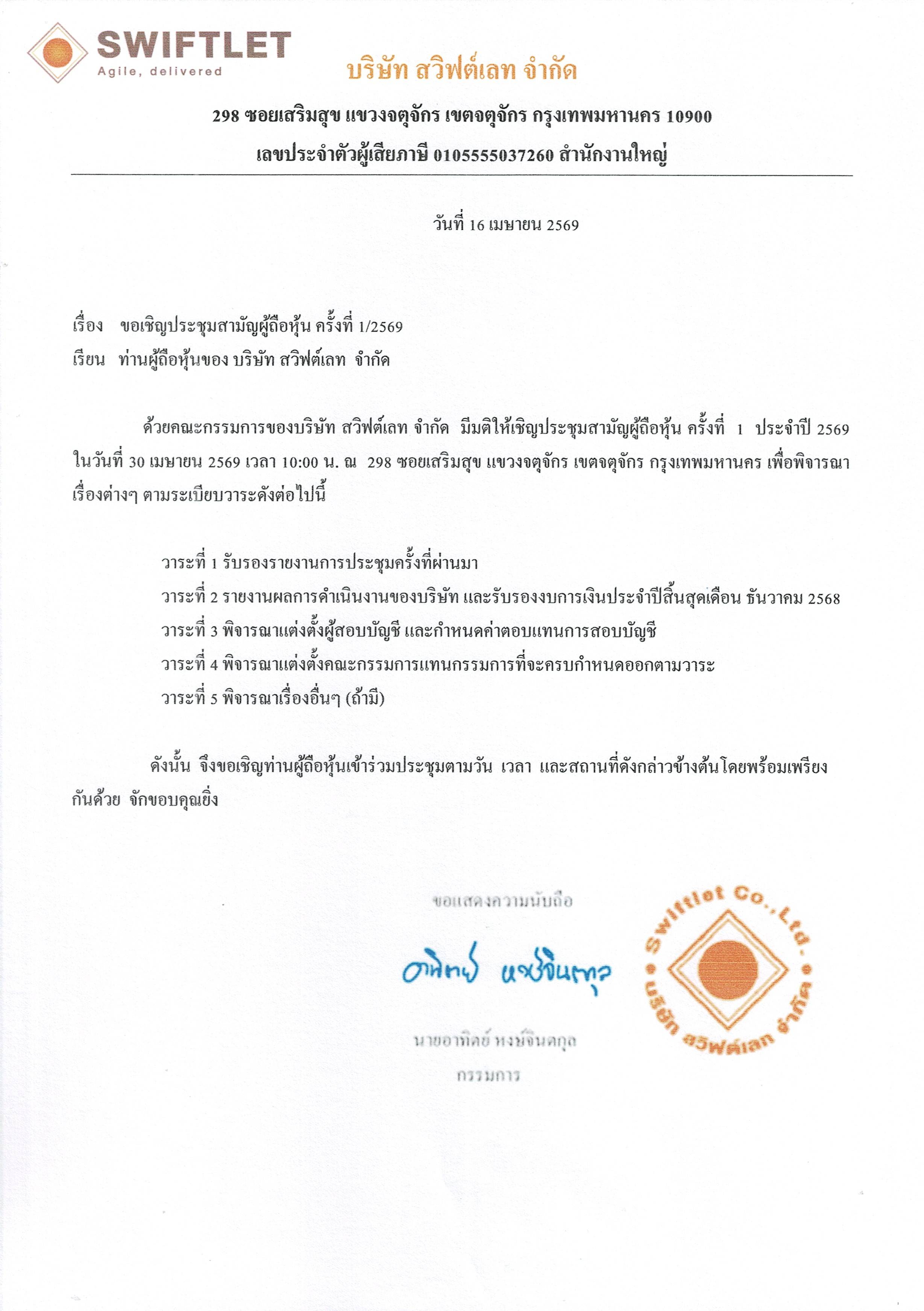 ประกาศ เรื่อง ประชุมรับรองงบการเงิน