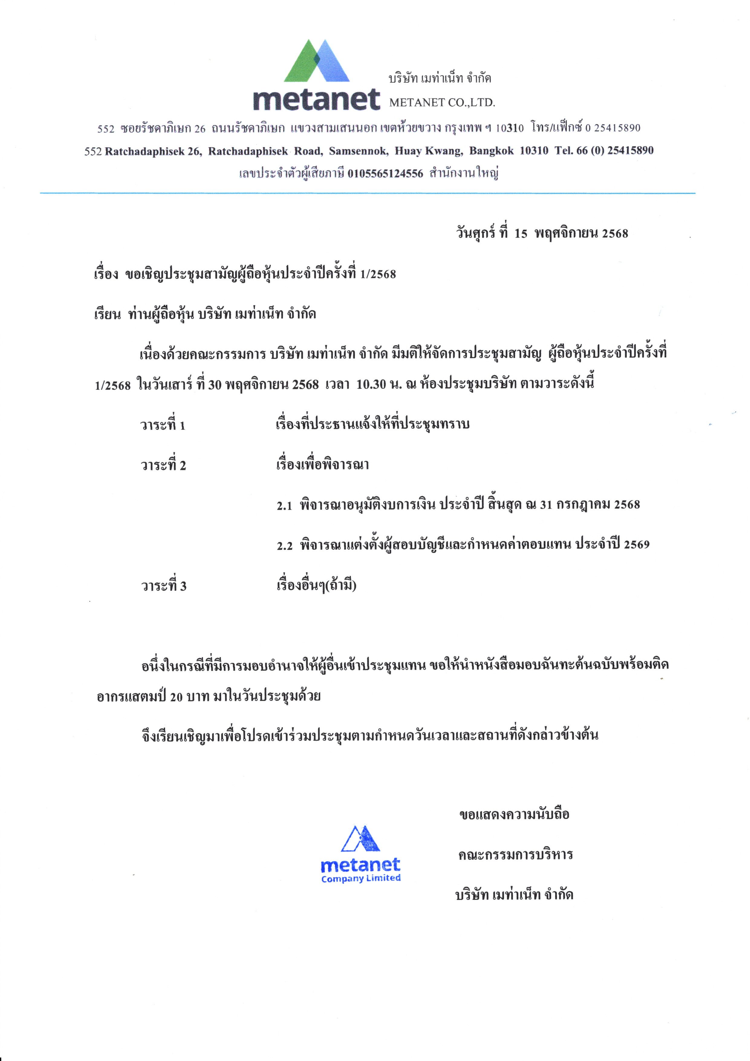 ประกาศ เรื่อง ประชุมรับรองงบการเงิน
