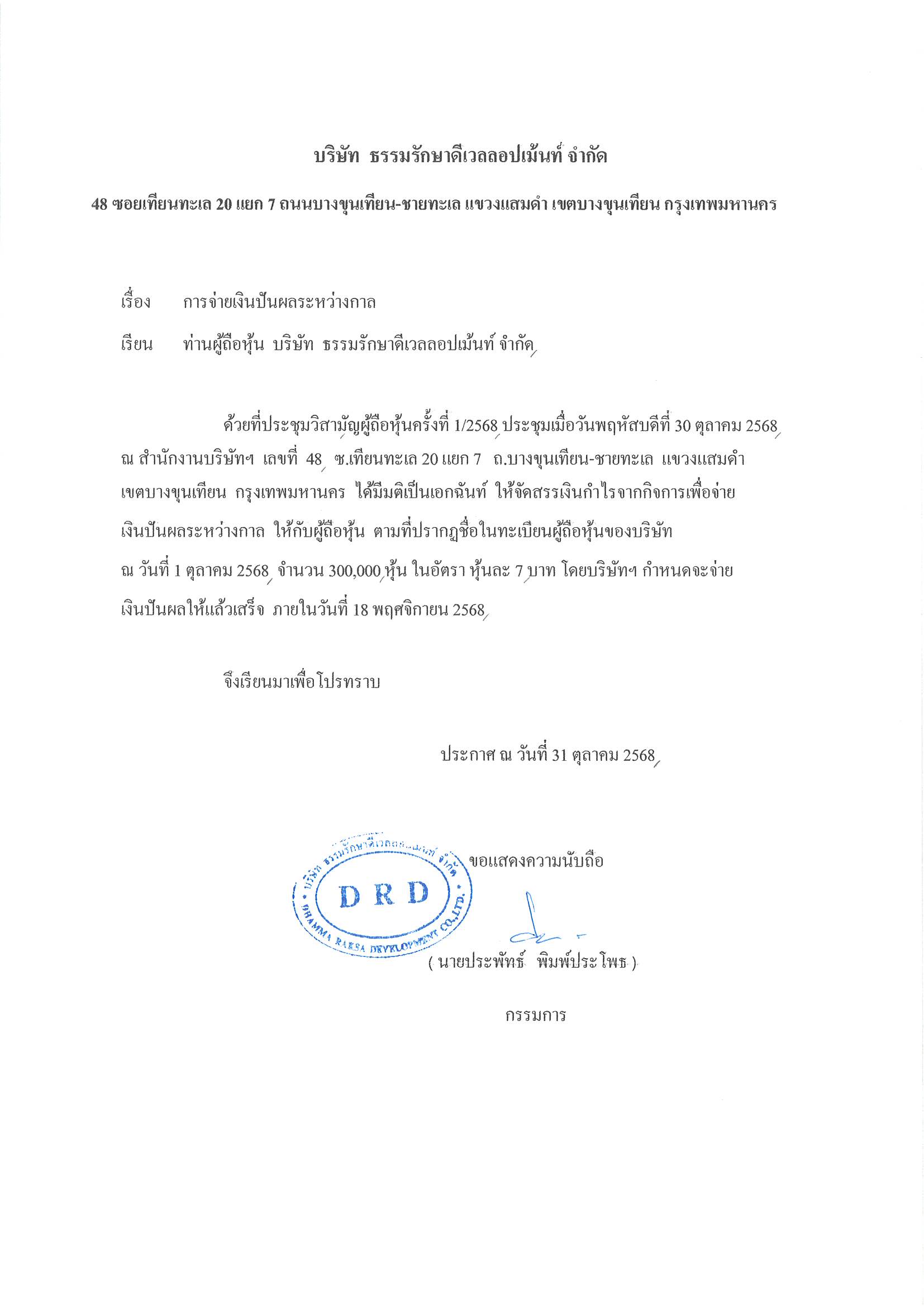 ประกาศ เรื่อง ประกาศจ่ายเงินปันผล