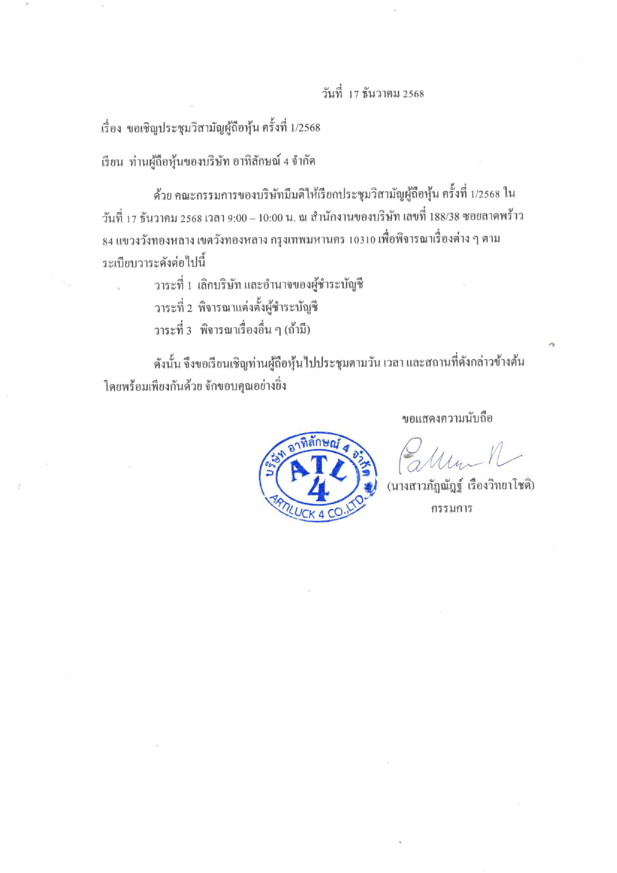 ประกาศ เรื่อง ประชุมวิสามัญ เลิกบริษัท