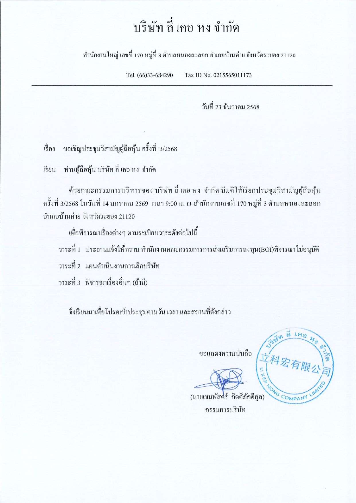 ประกาศ เรื่อง ประชุมวิสามัญ เลิกบริษัท
