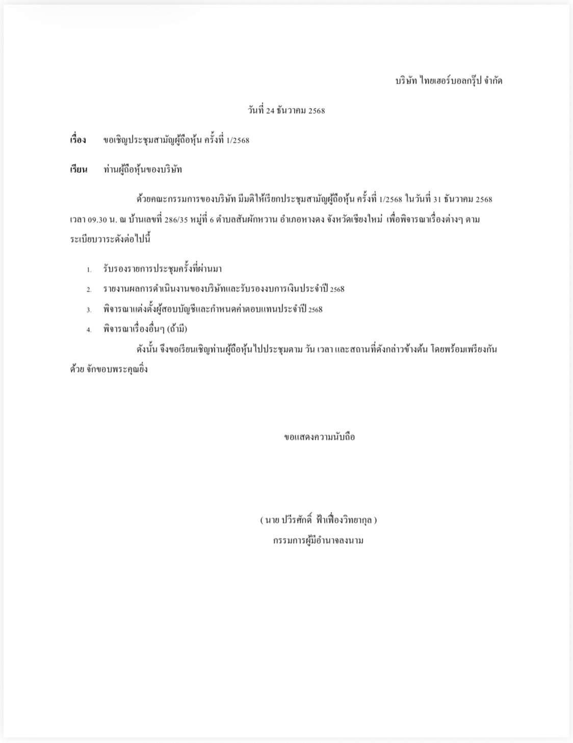 ประกาศ เรื่อง ประชุมรับรองงบการเงิน
