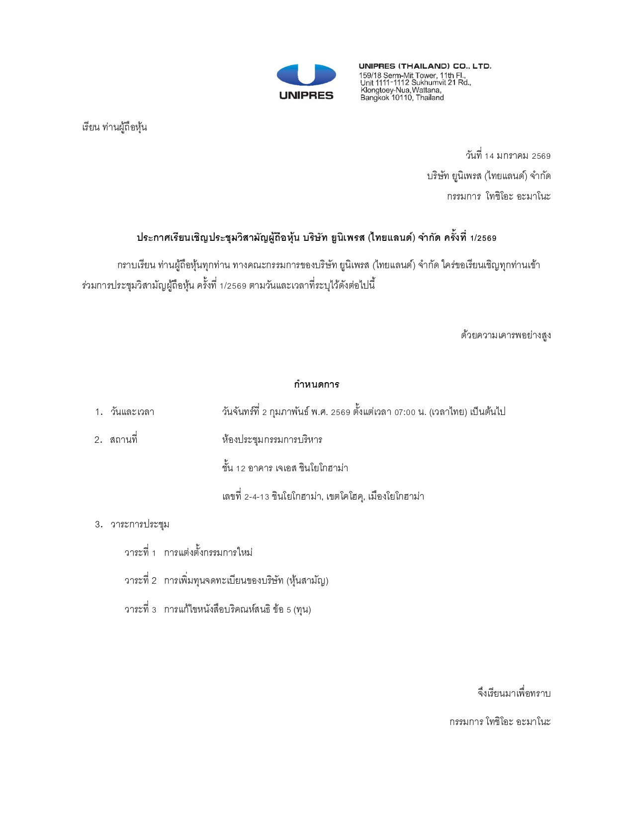 ประกาศ เรื่อง เพิ่มทุน