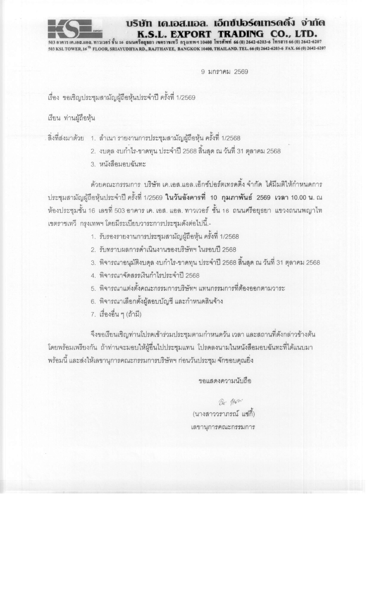 ประกาศ เรื่อง ประชุมรับรองงบการเงิน