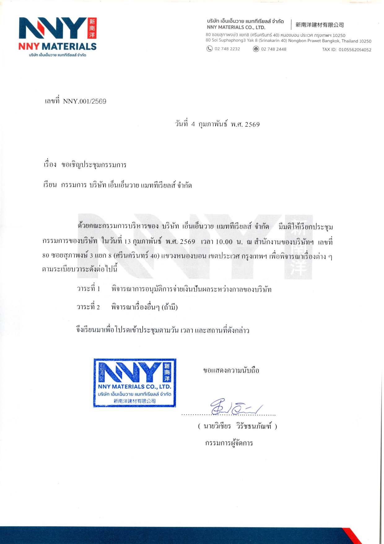 ประกาศ เรื่อง ประชุมวิสามัญ จ่ายเงินปันผล