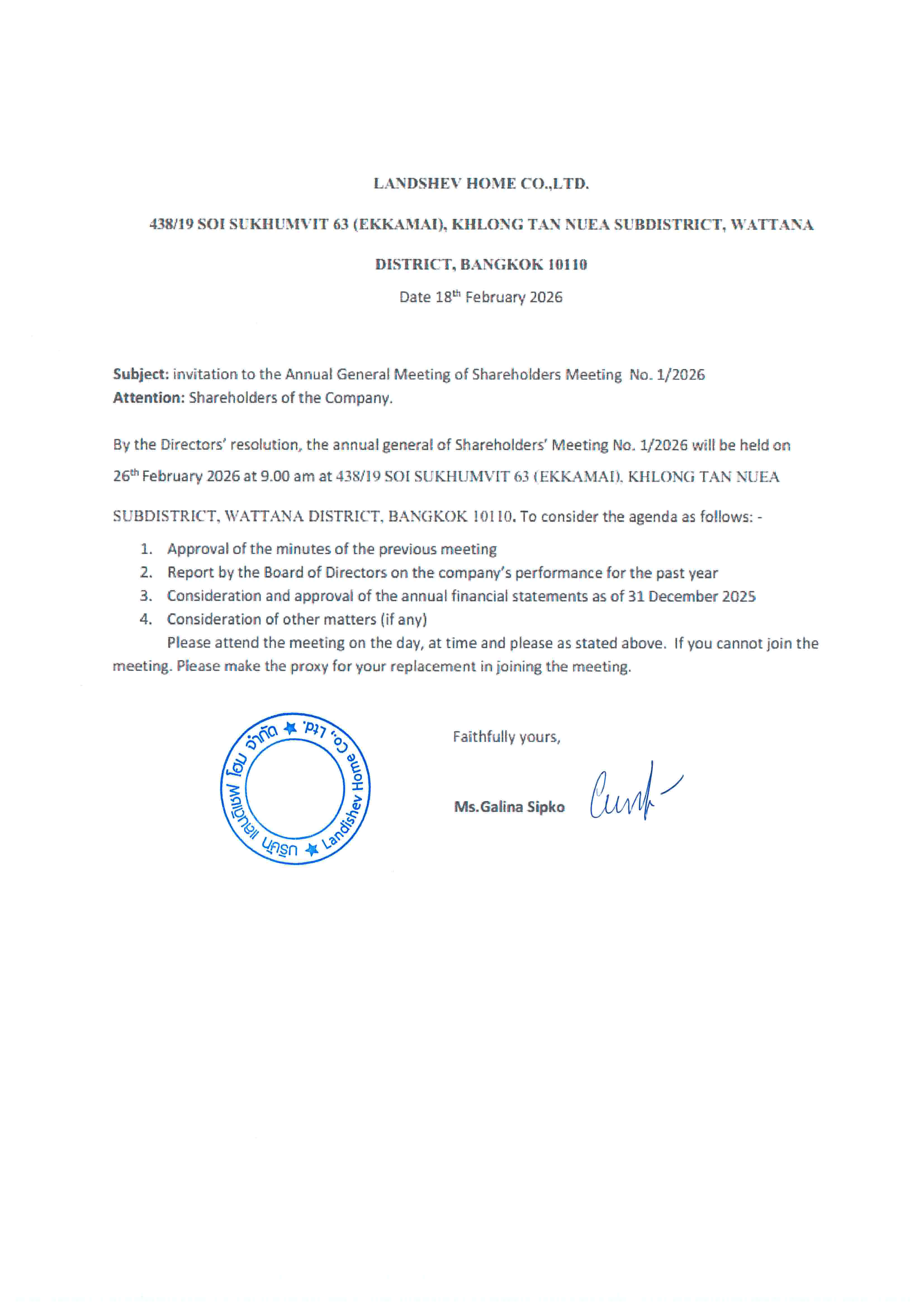 ประกาศ เรื่อง ประชุมรับรองงบการเงิน