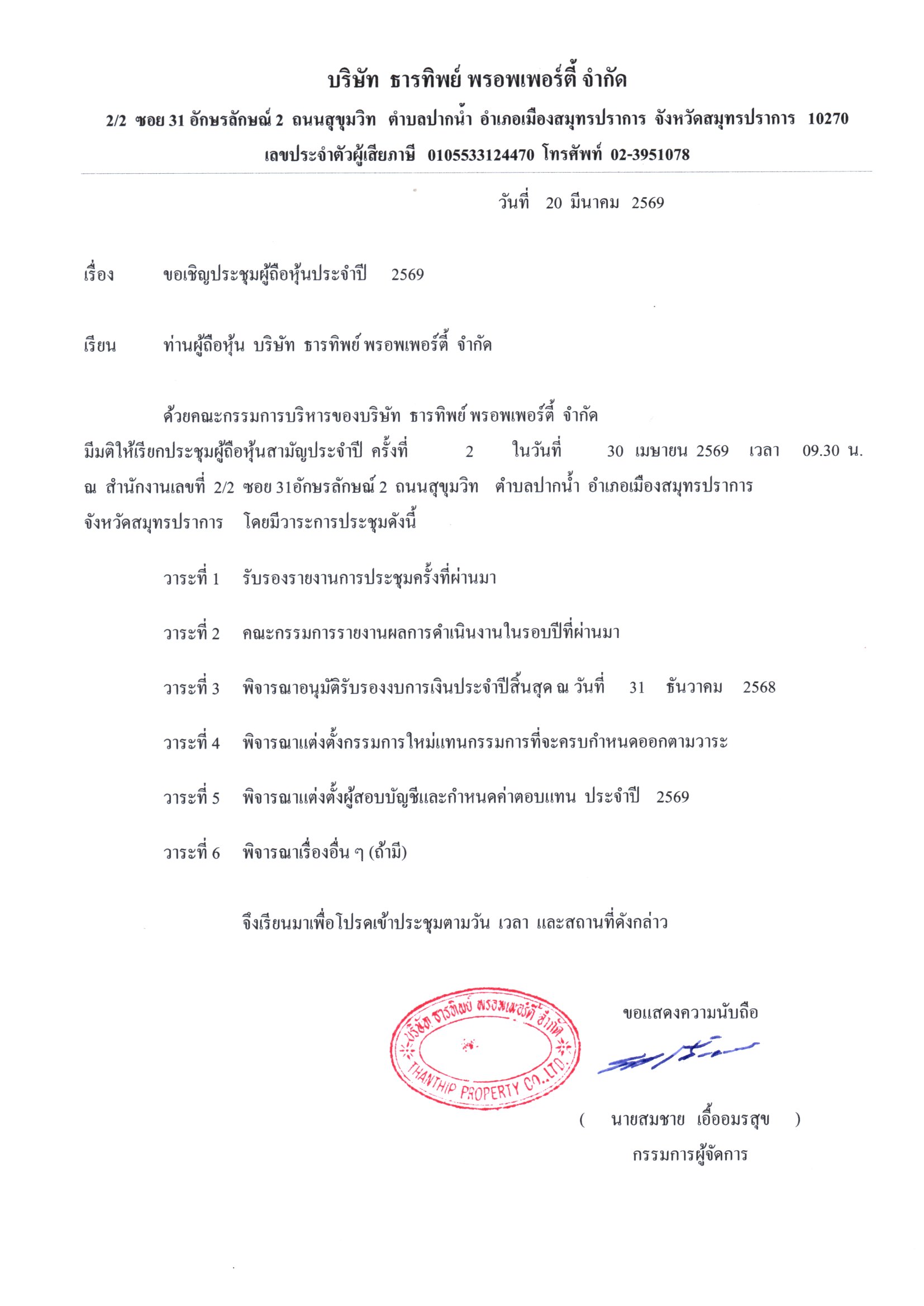 ประกาศ เรื่อง ประชุมรับรองงบการเงิน