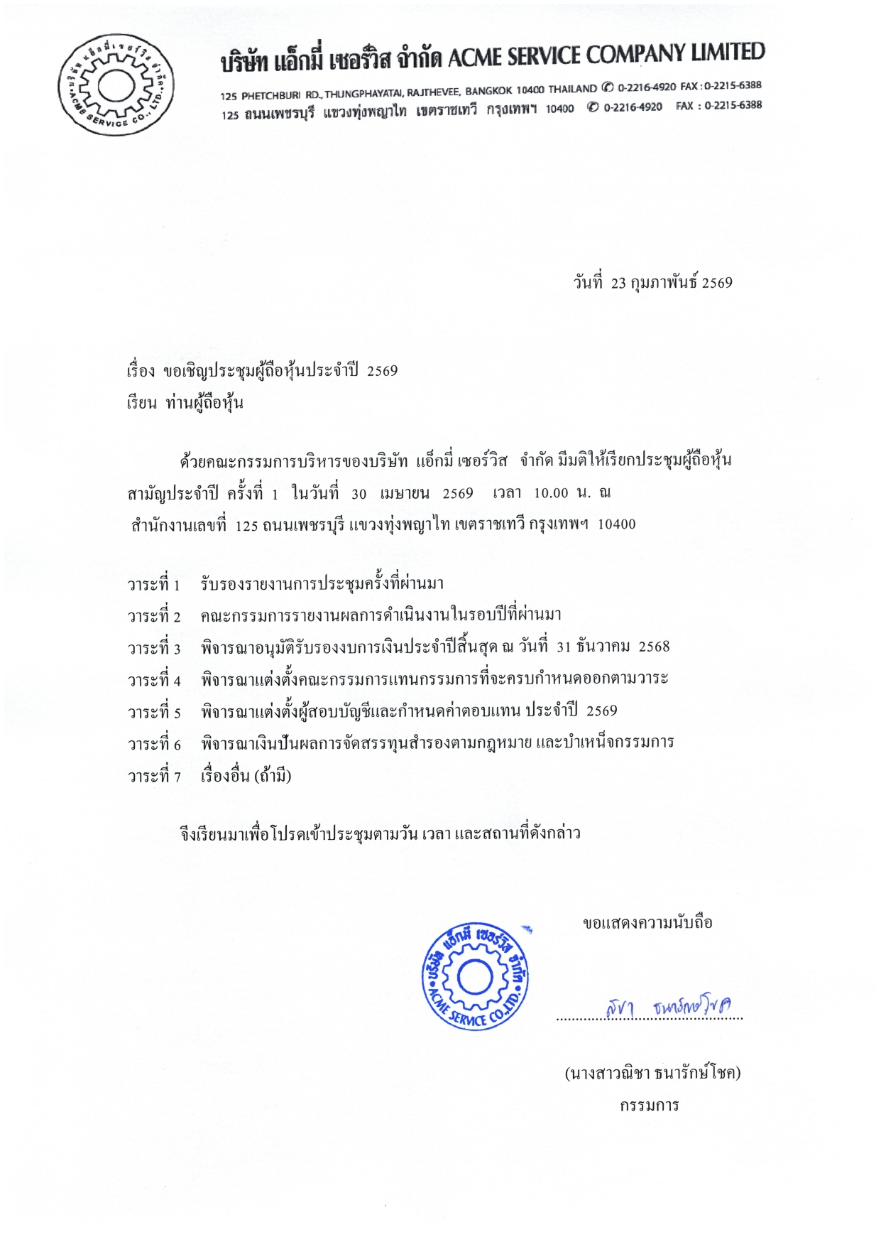 ประกาศ เรื่อง ประชุมรับรองงบการเงิน