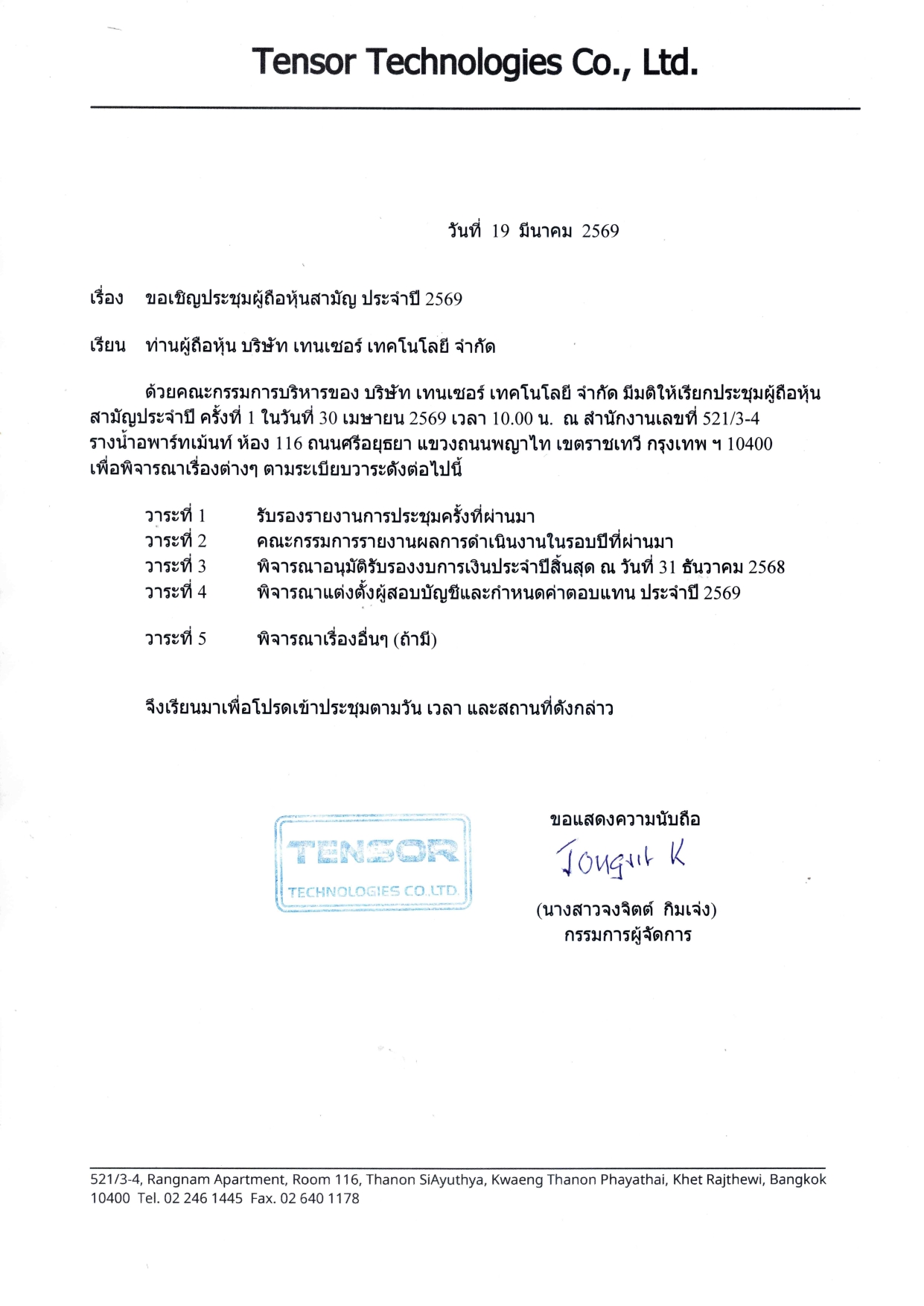 ประกาศ เรื่อง ประชุมรับรองงบการเงิน