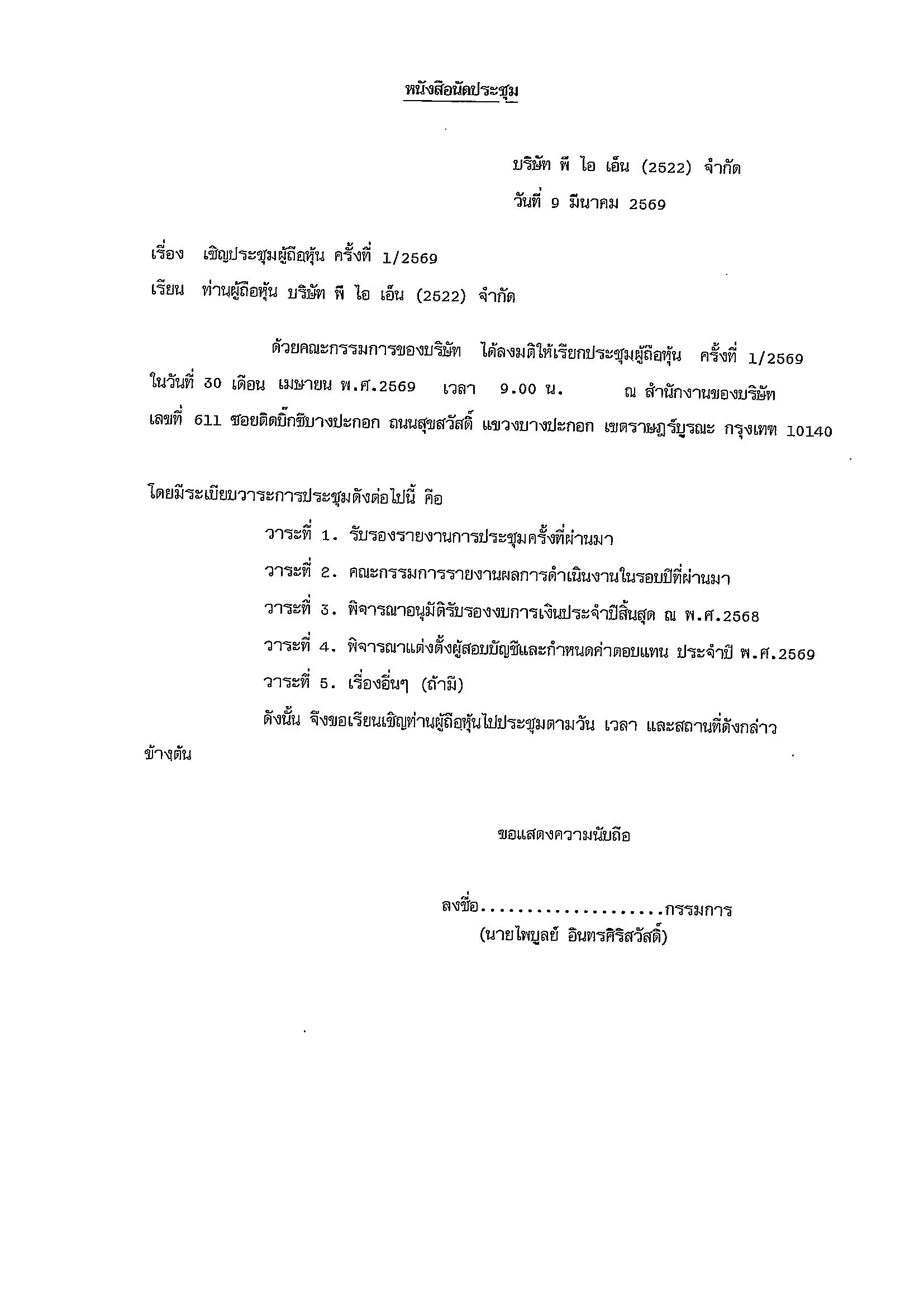 ประกาศ เรื่อง ประชุมรับรองงบการเงิน