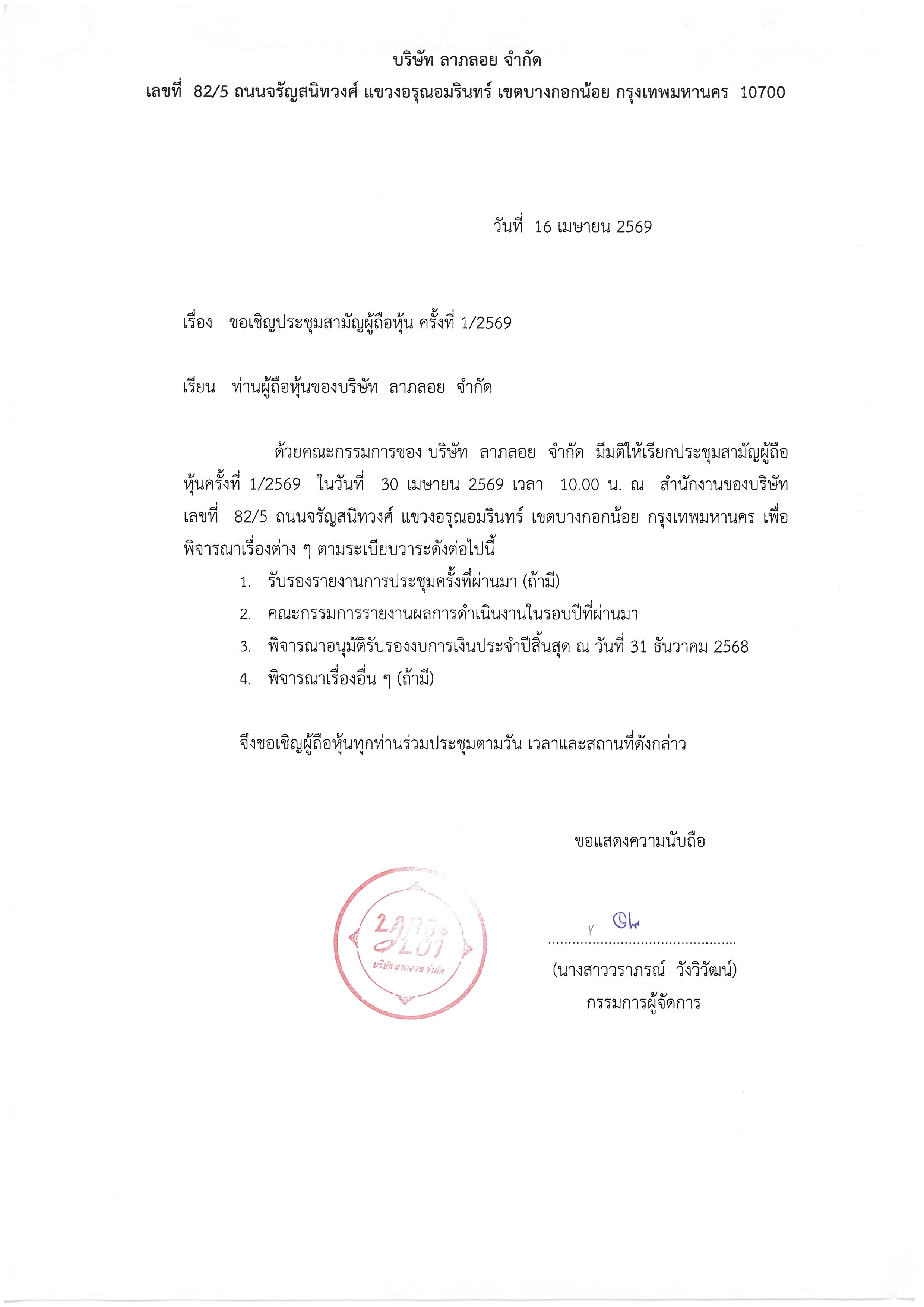 ประกาศ เรื่อง ประชุมรับรองงบการเงิน