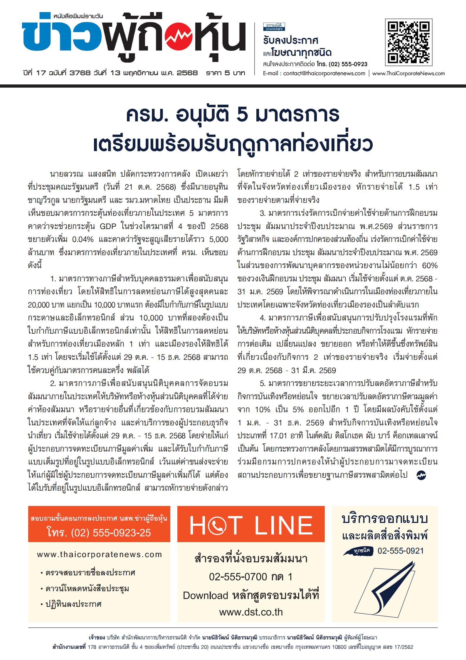 หนังสือพิมพ์ ข่าวผู้ถือหุ้น ฉบับล่าสุด