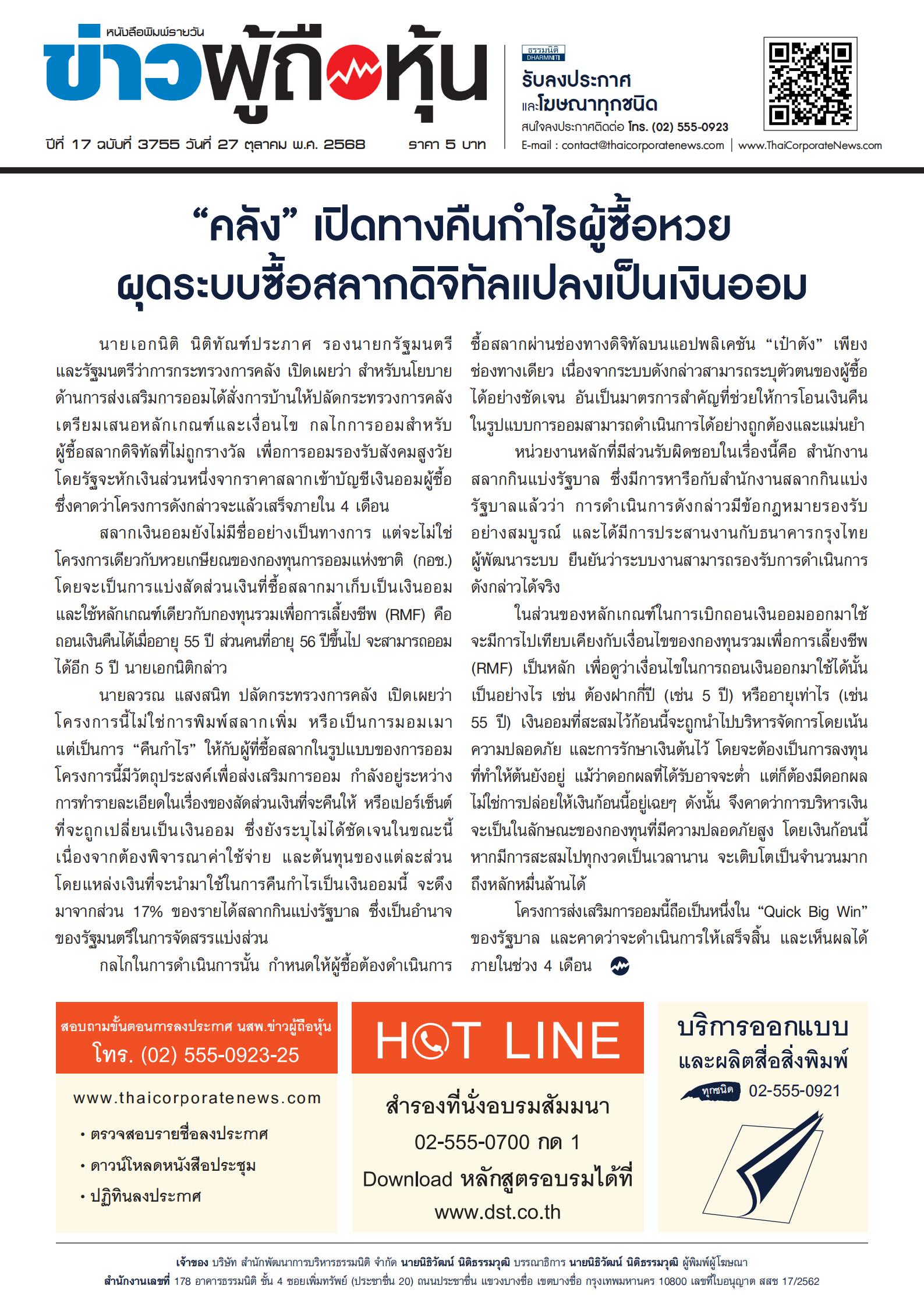 หนังสือพิมพ์ ข่าวผู้ถือหุ้น ฉบับล่าสุด