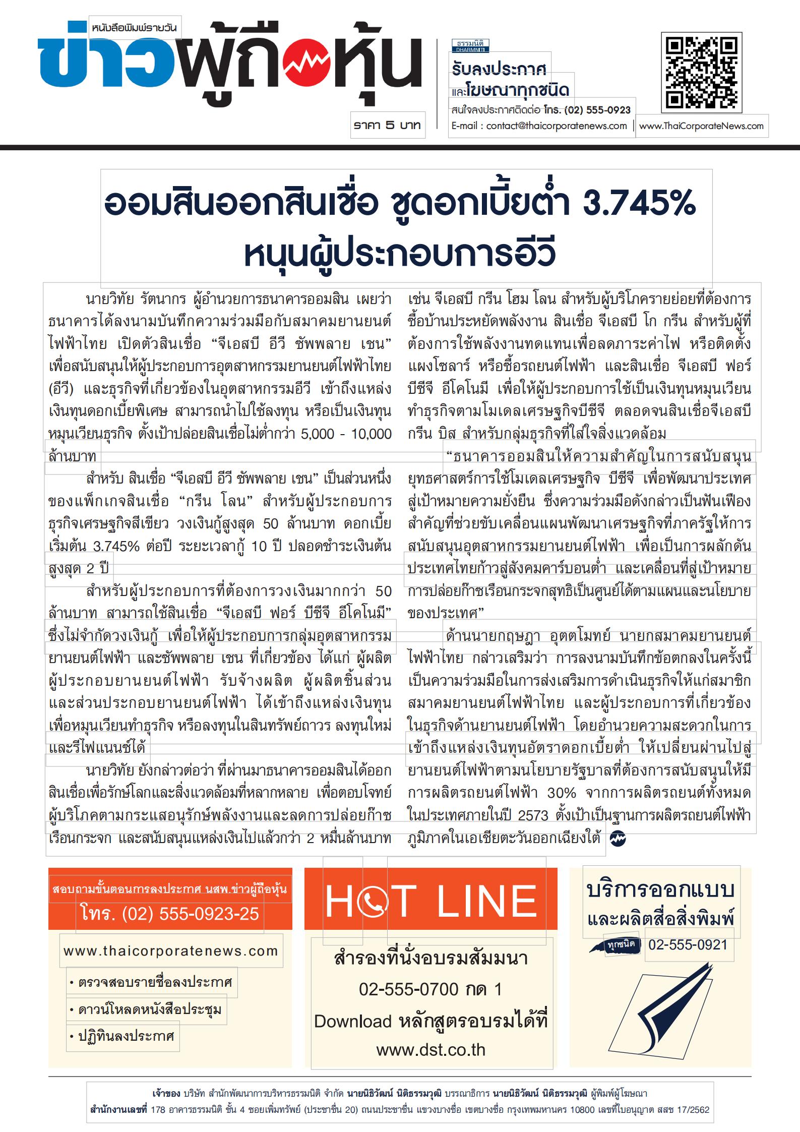 หนังสือพิมพ์ ข่าวผู้ถือหุ้น ฉบับล่าสุด