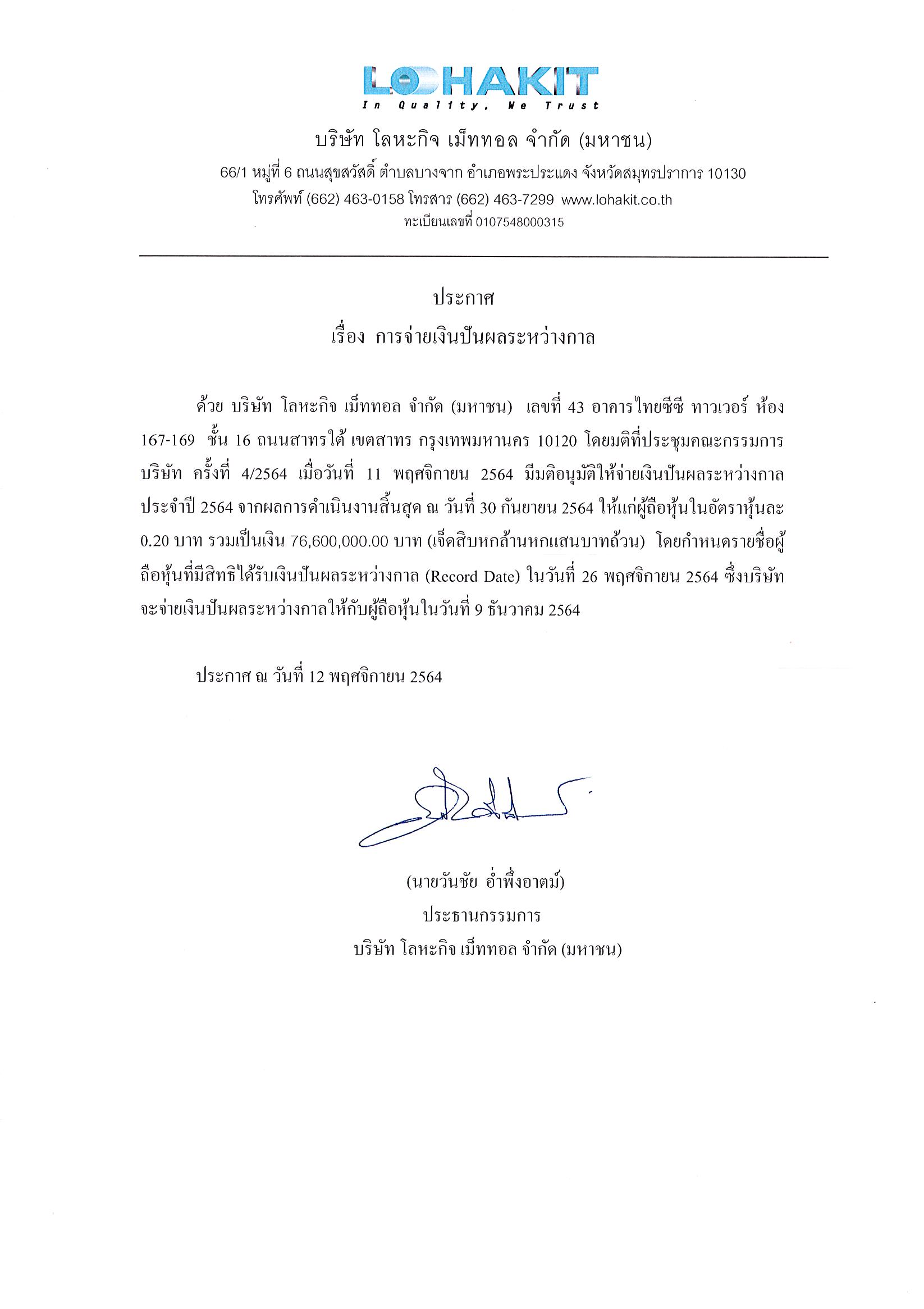 ปีที่ 13ฉบับที่ 2689 เล่มที่ 1 วันที่ 15 พฤศจิกายน 2564