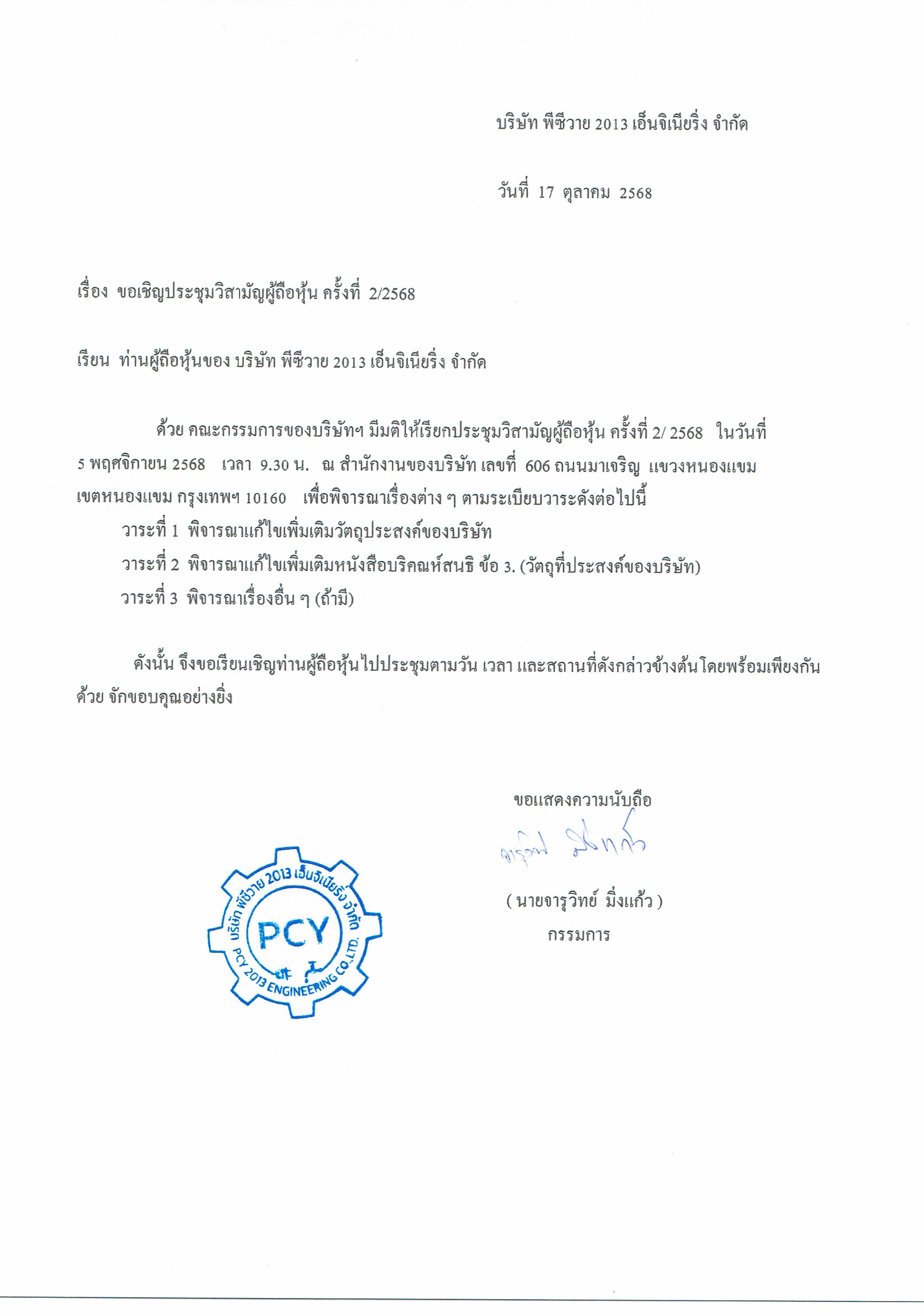 ประกาศ เรื่อง แก้ไขข้อบังคับ-แก้ไขวัตถุประสงค์