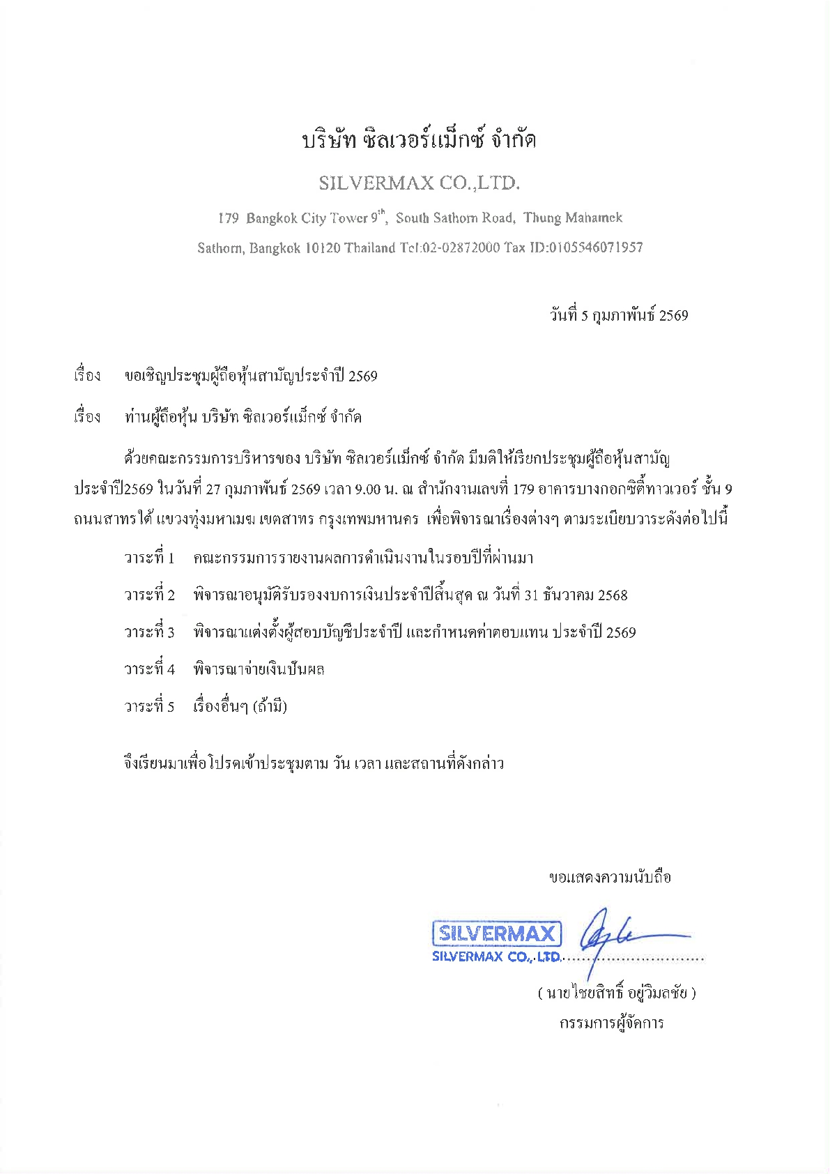 ประกาศ เรื่อง ประชุมรับรองงบการเงิน