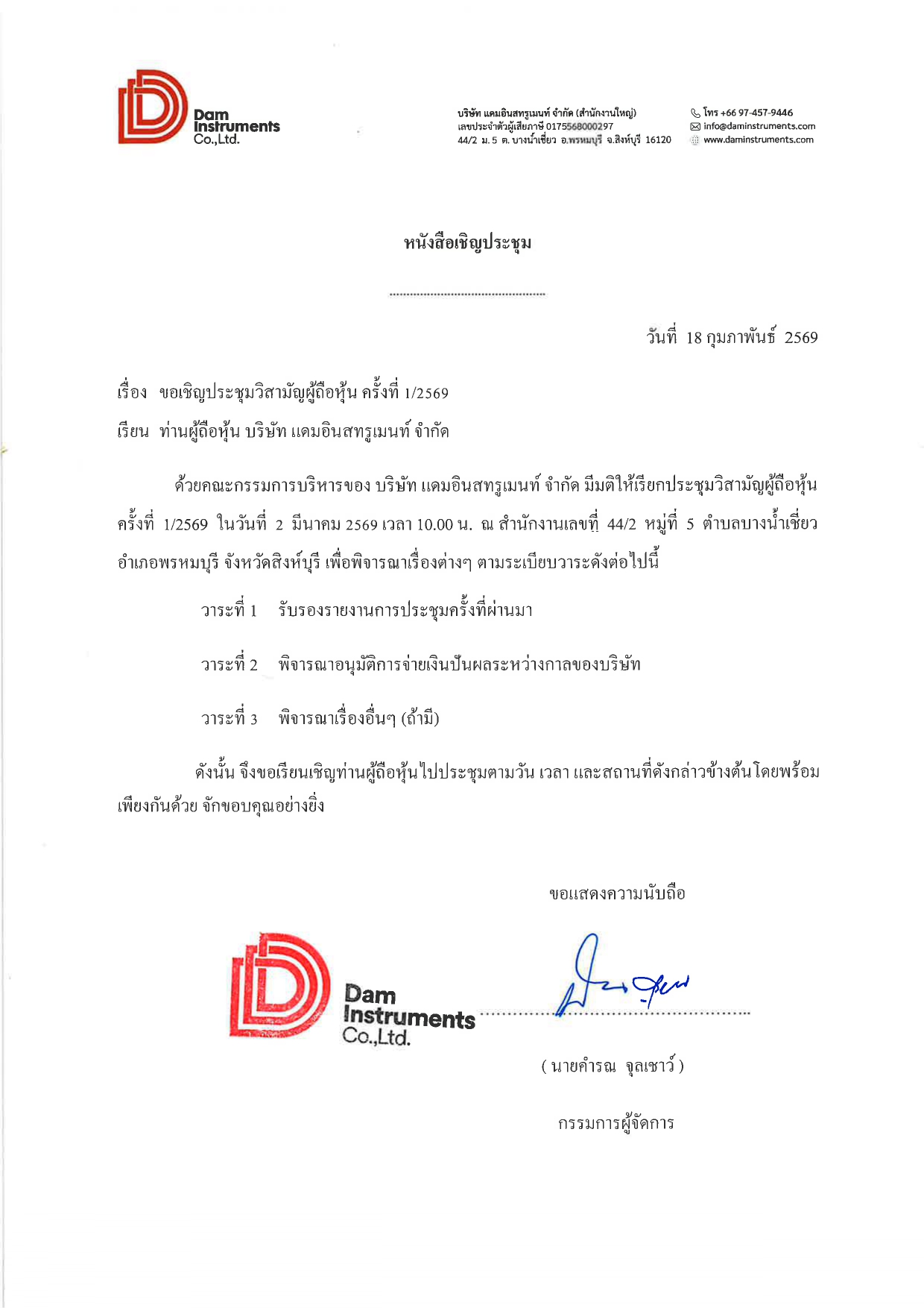 ประกาศ เรื่อง ประชุมวิสามัญ จ่ายเงินปันผล