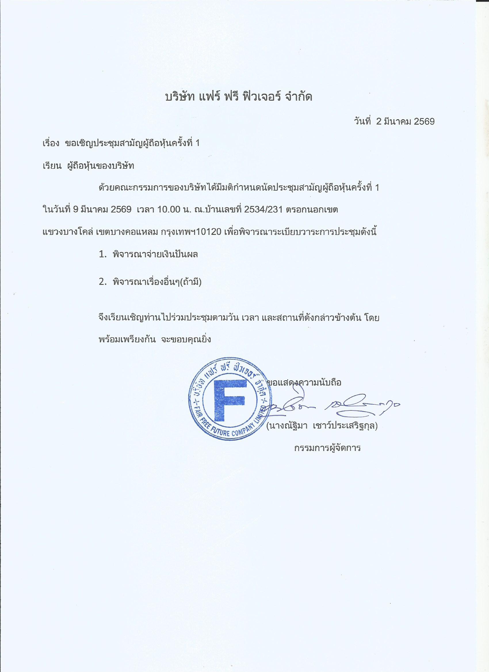 ประกาศ เรื่อง ประชุมวิสามัญ จ่ายเงินปันผล