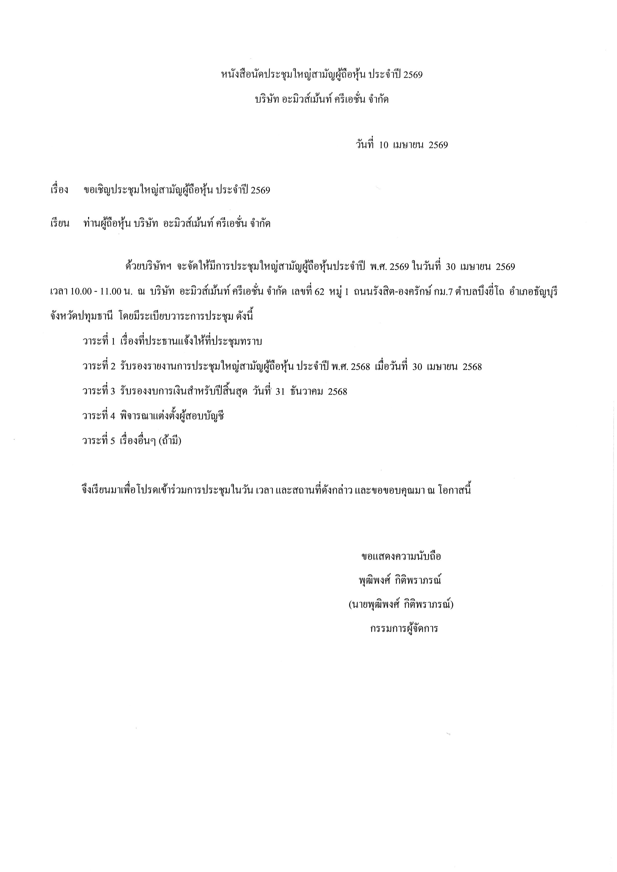 ประกาศ เรื่อง ประชุมรับรองงบการเงิน