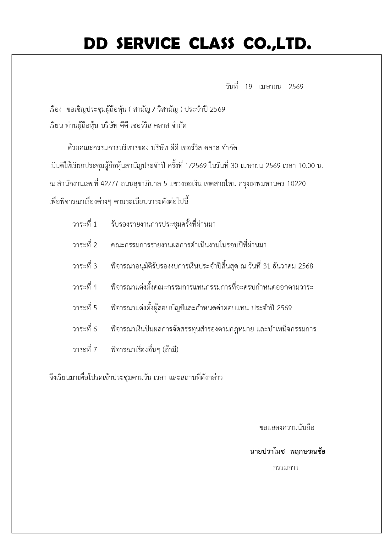 ประกาศ เรื่อง ประชุมรับรองงบการเงิน