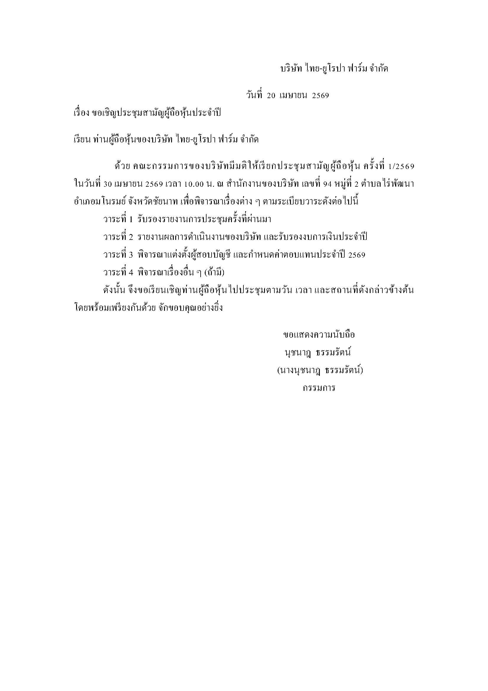 ประกาศ เรื่อง ประชุมรับรองงบการเงิน