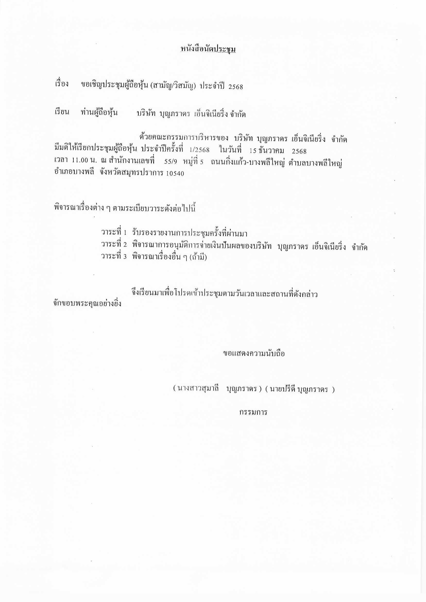ประกาศ เรื่อง ประชุมวิสามัญ จ่ายเงินปันผล