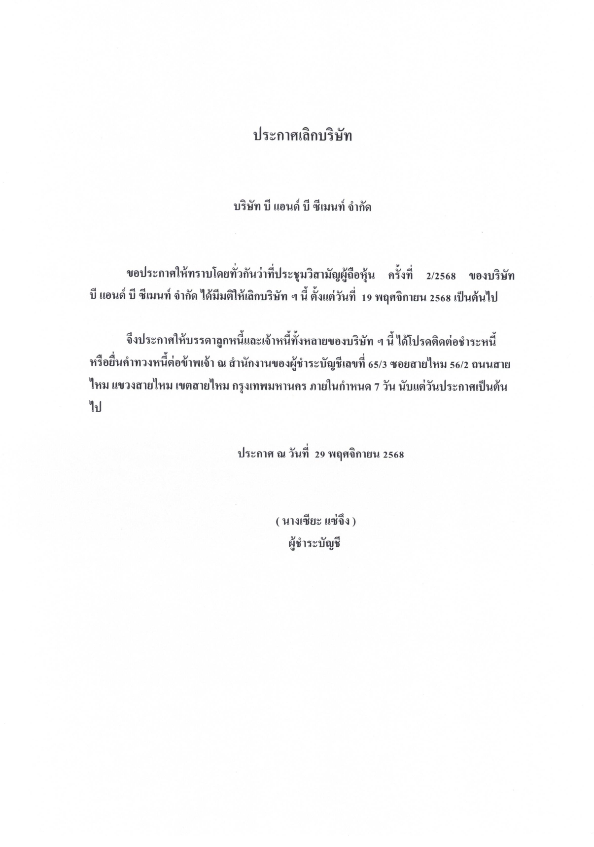 ประกาศ เรื่อง ประกาศเลิกบริษัทจำกัด