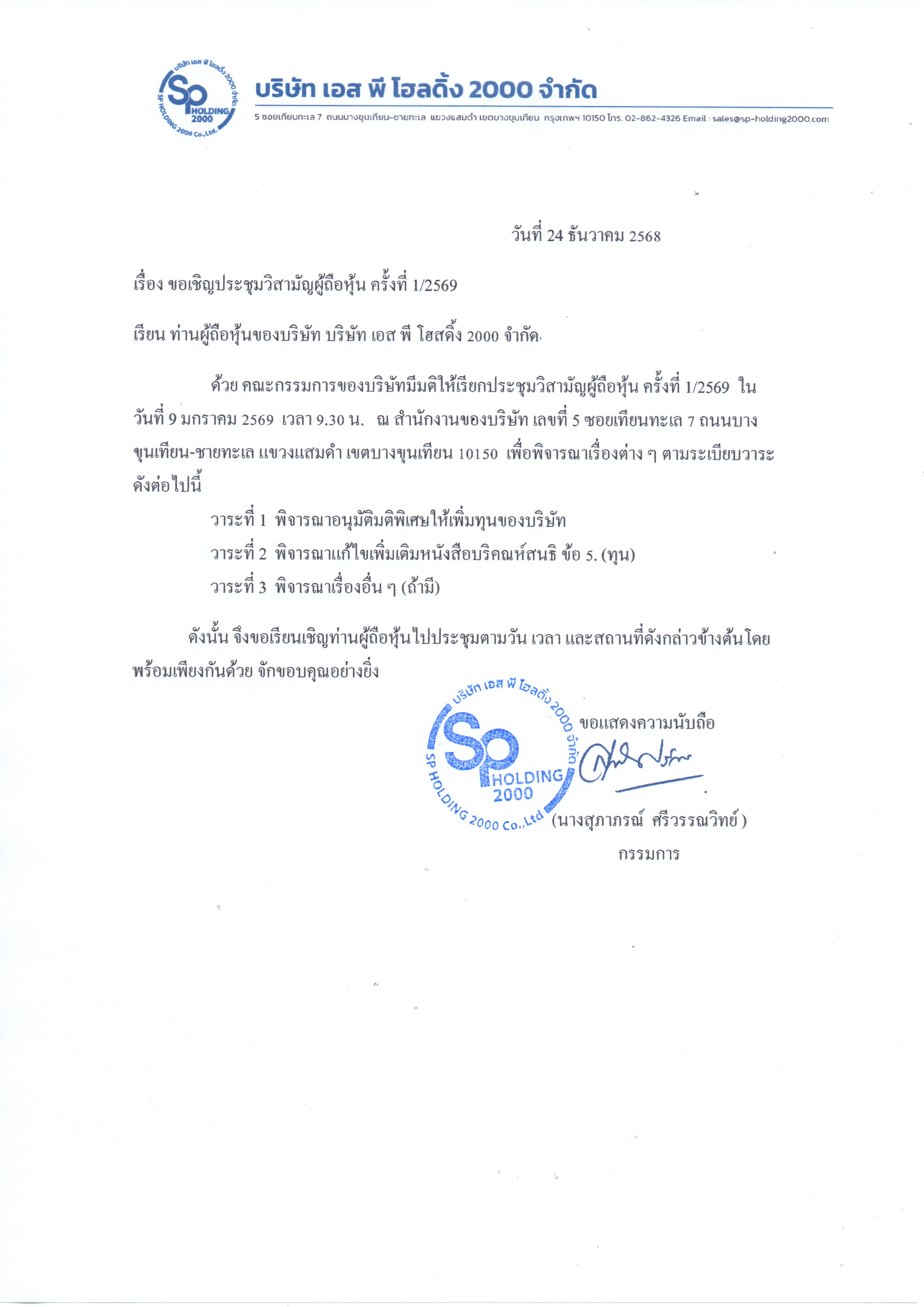 ประกาศ เรื่อง เพิ่มทุน