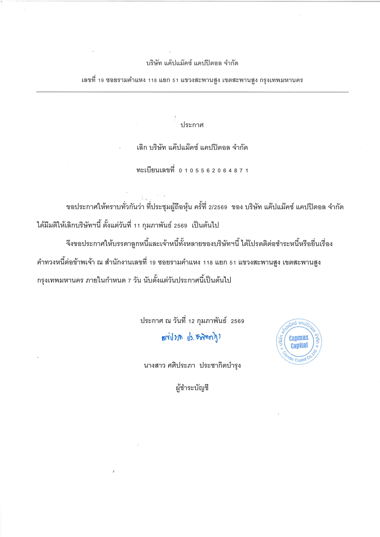 ประกาศ เรื่อง ประกาศเลิกบริษัทจำกัด