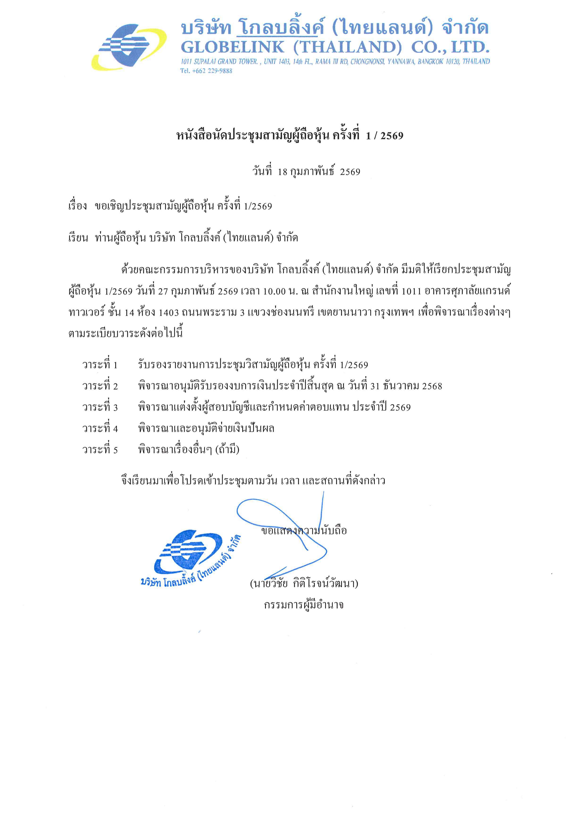 ประกาศ เรื่อง ประชุมรับรองงบการเงิน