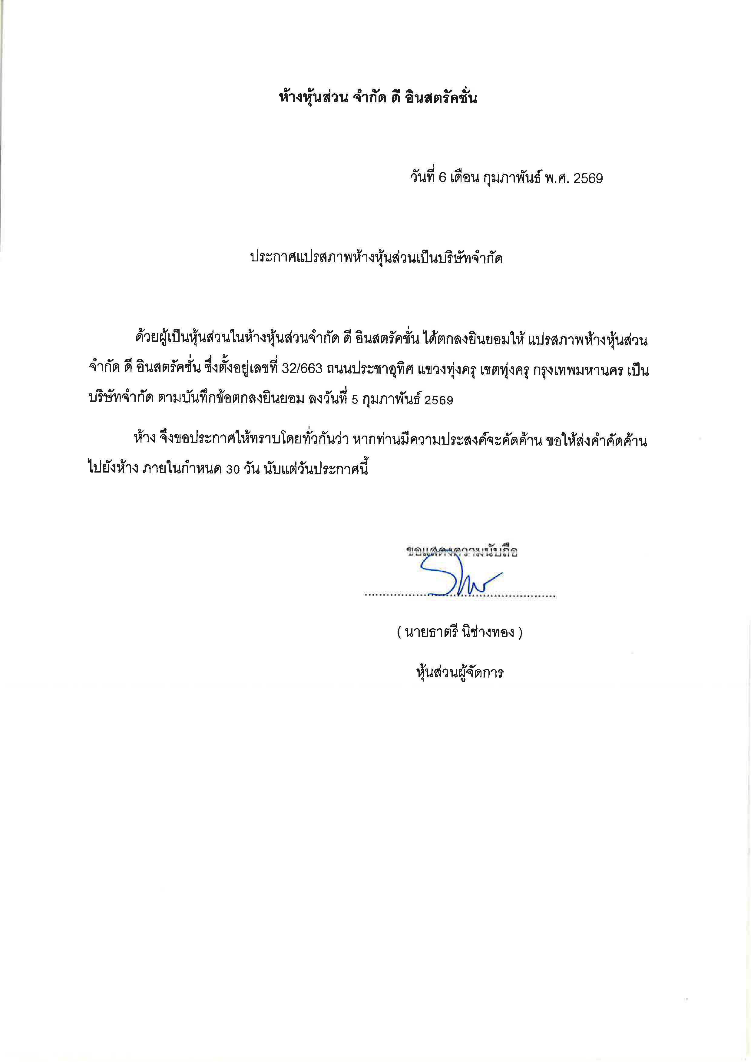 ประกาศ เรื่อง แปรสภาพห้างหุ้นส่วนเป็นบริษัทจำกัด