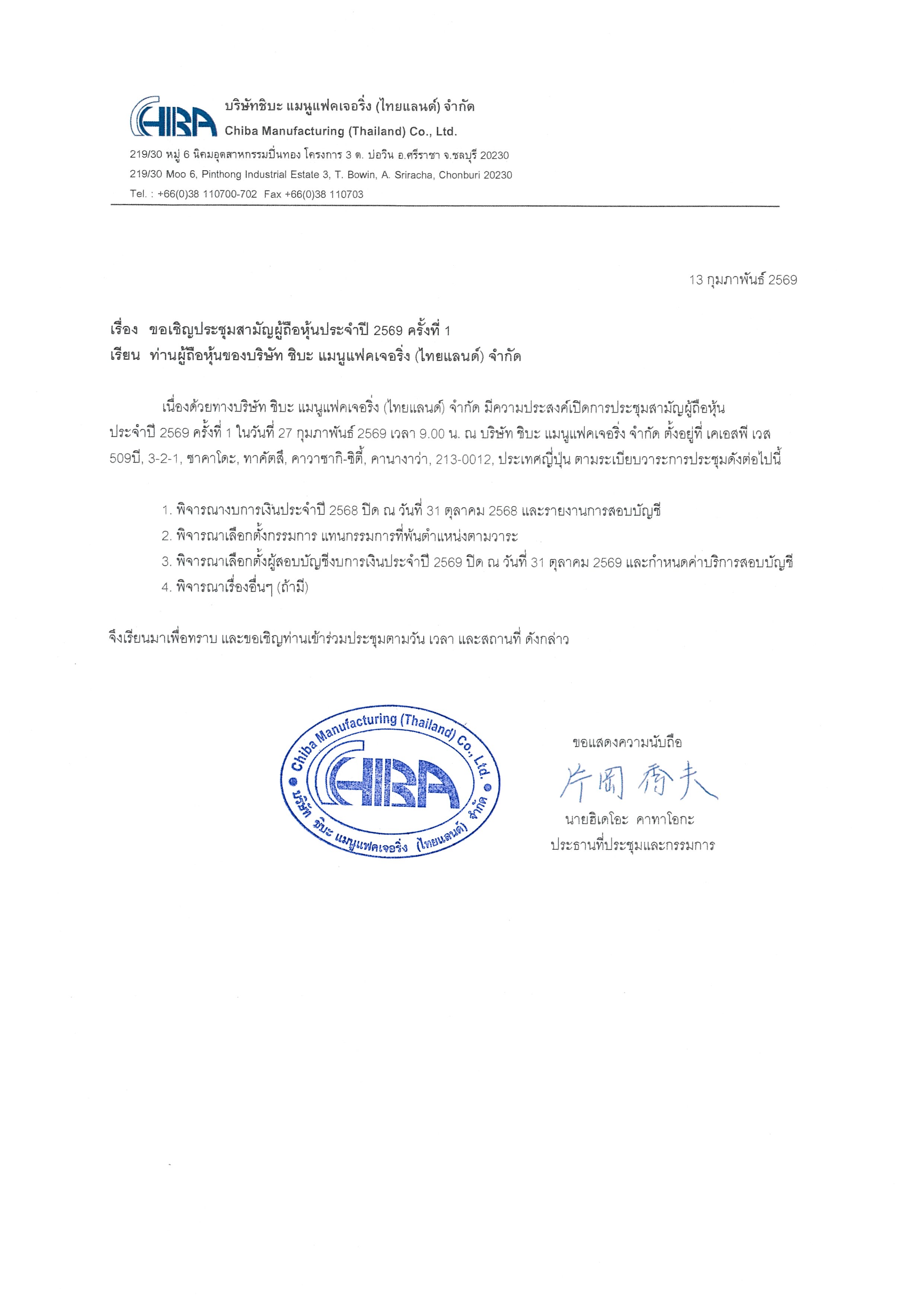 ประกาศ เรื่อง ประชุมรับรองงบการเงิน