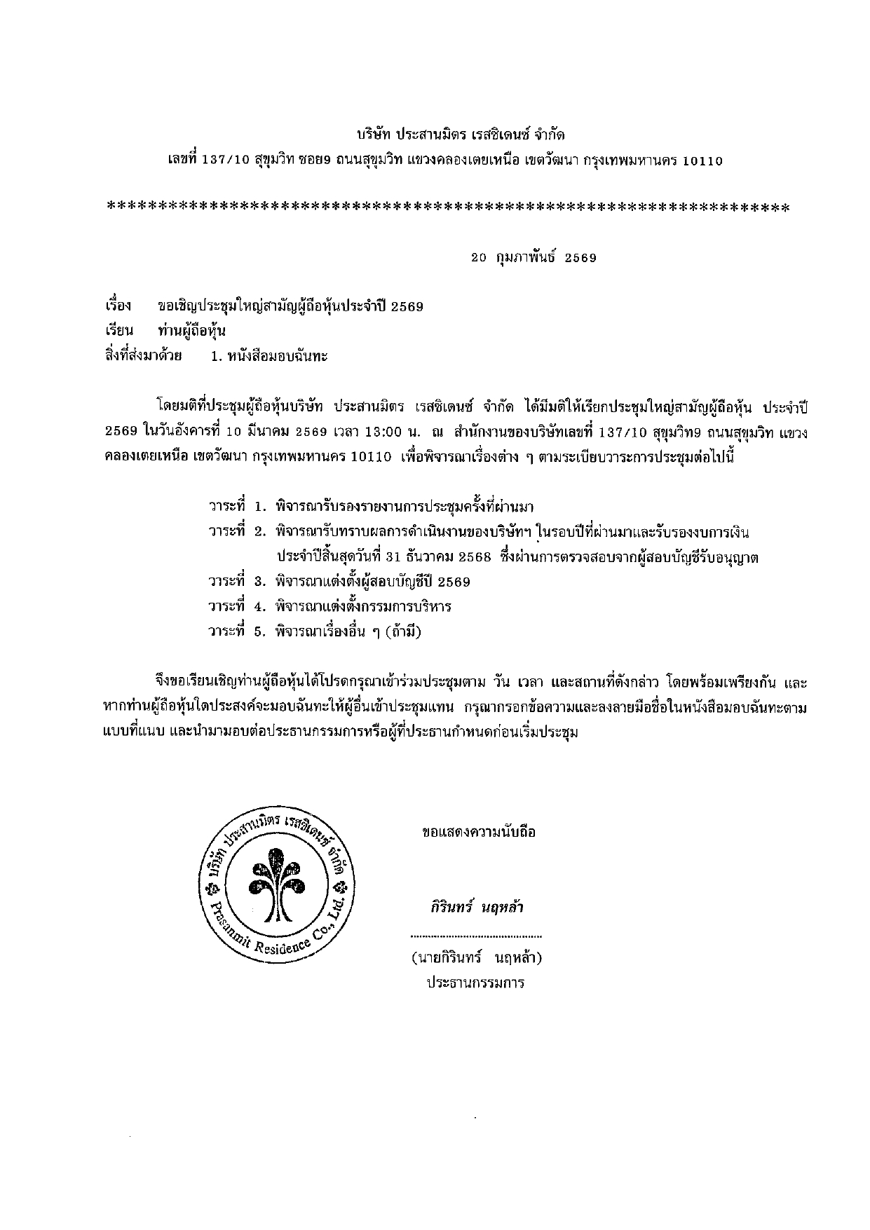 ประกาศ เรื่อง ประชุมรับรองงบการเงิน