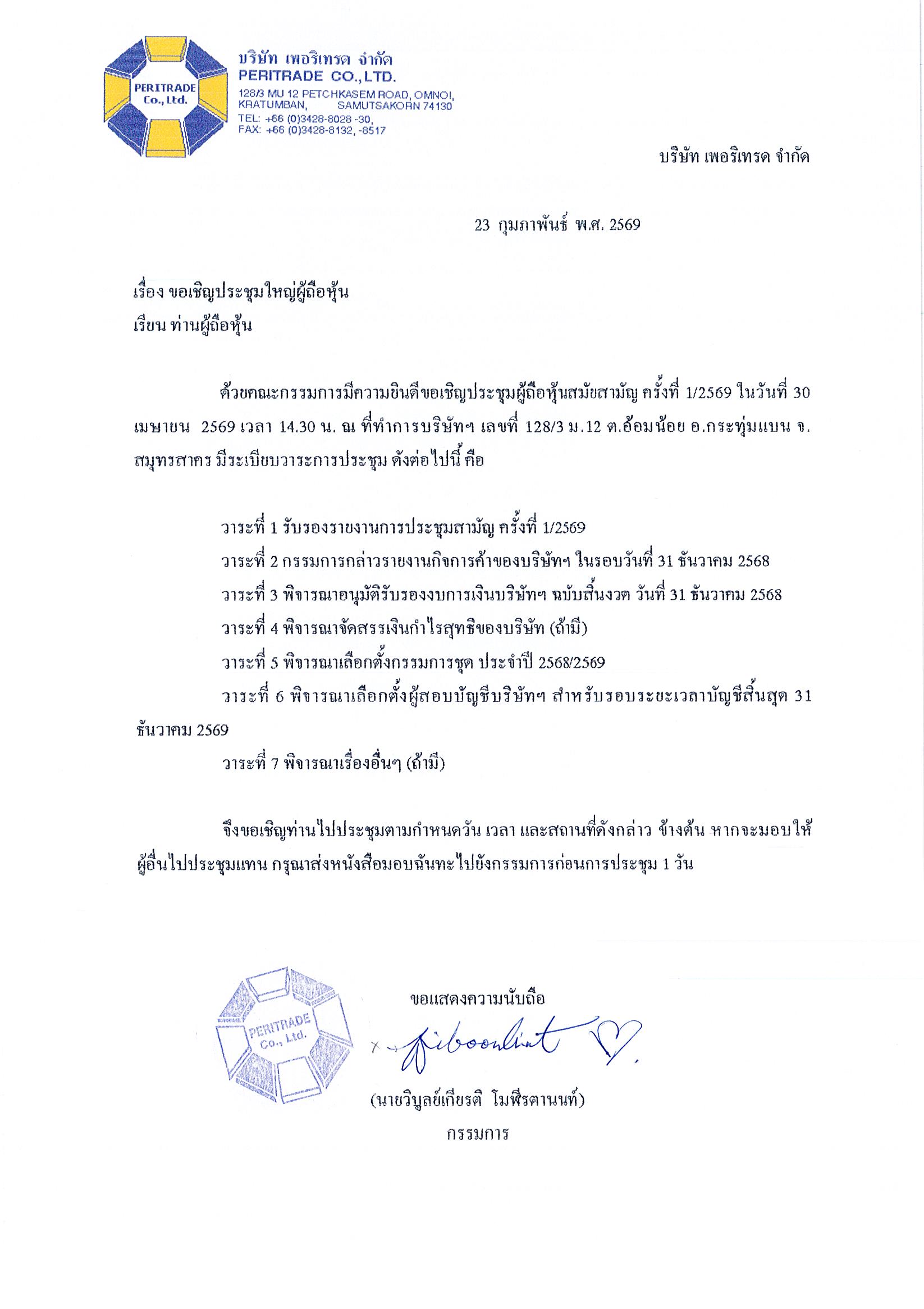 ประกาศ เรื่อง ประชุมรับรองงบการเงิน