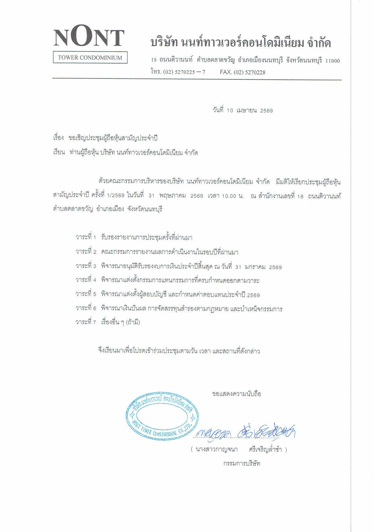 ประกาศ เรื่อง ประชุมรับรองงบการเงิน